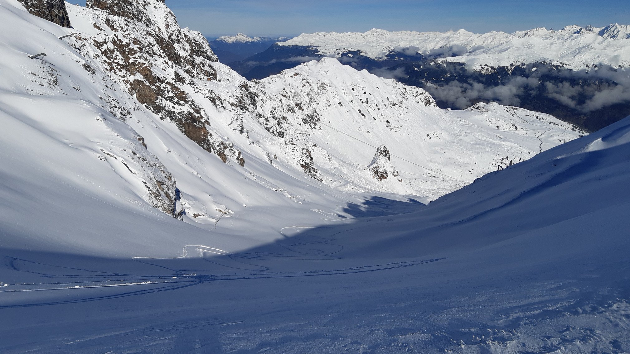Descente jusqu'à mi-Saulire sur une neige croutée, les double-rockers n'étaient pas de trop.