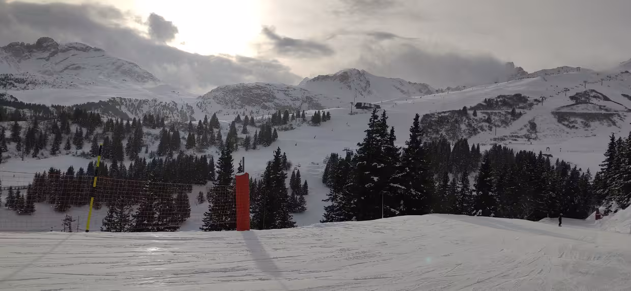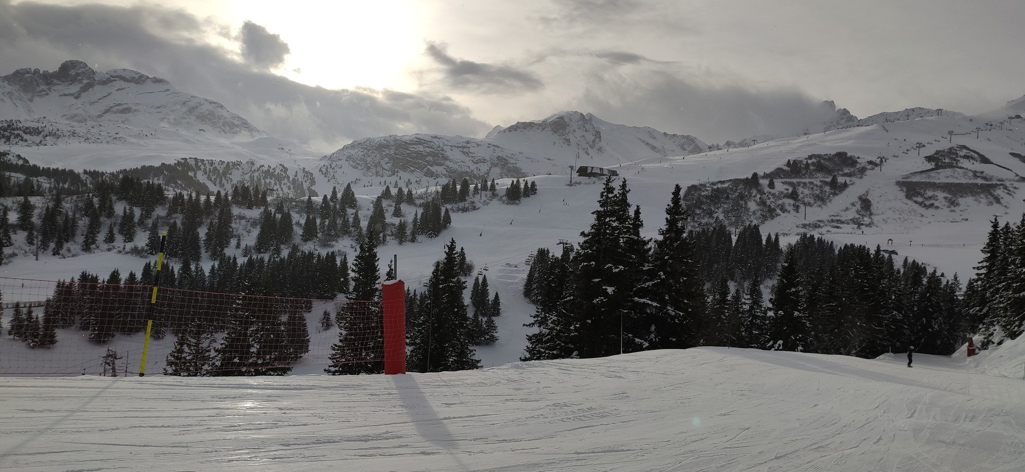 Plus bas on trouve de la neige plus dure ou plus de canon, mais ça skie jusqu'au Praz et à la Tania sans soucis donc c' est bien cool d'enchaîner du haut du domaine jusqu'à la bière !