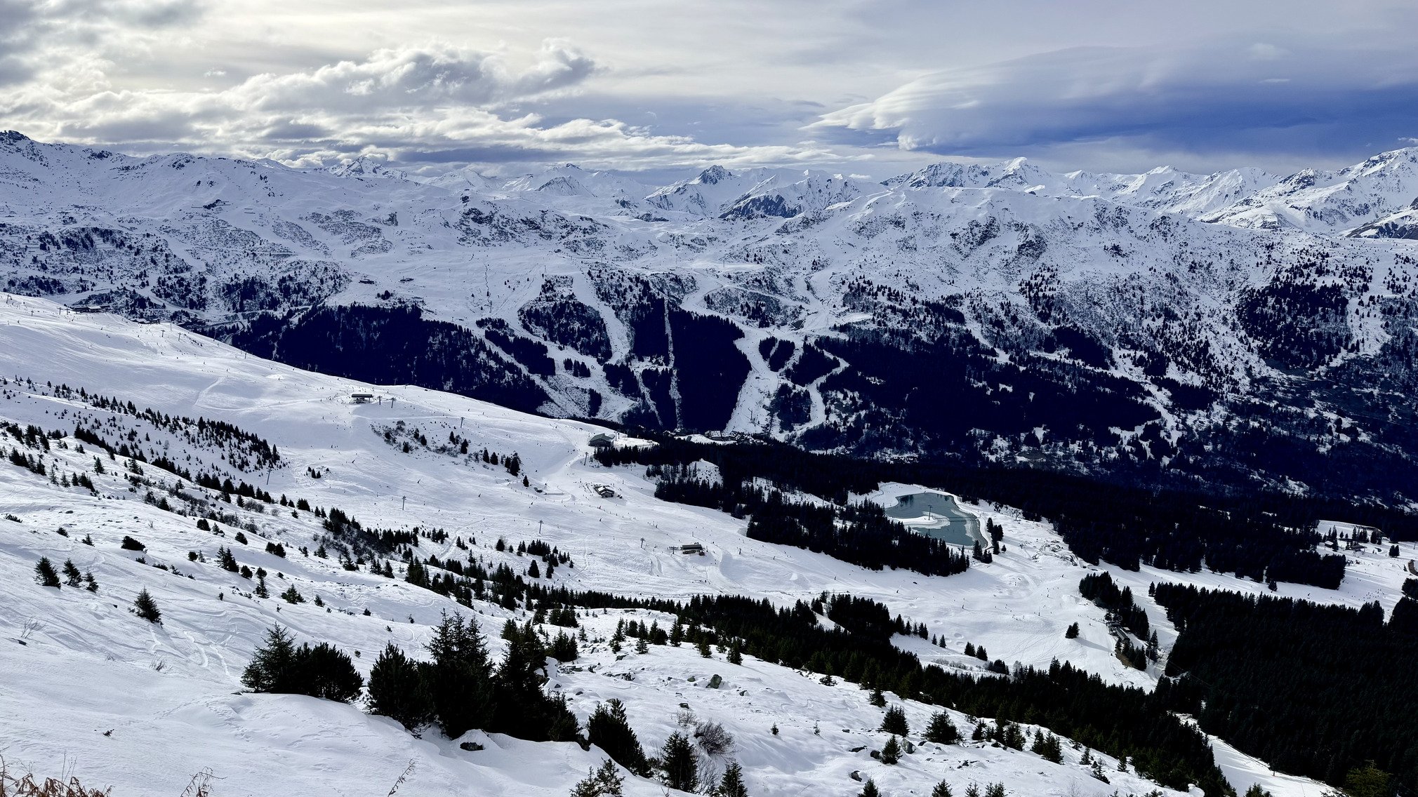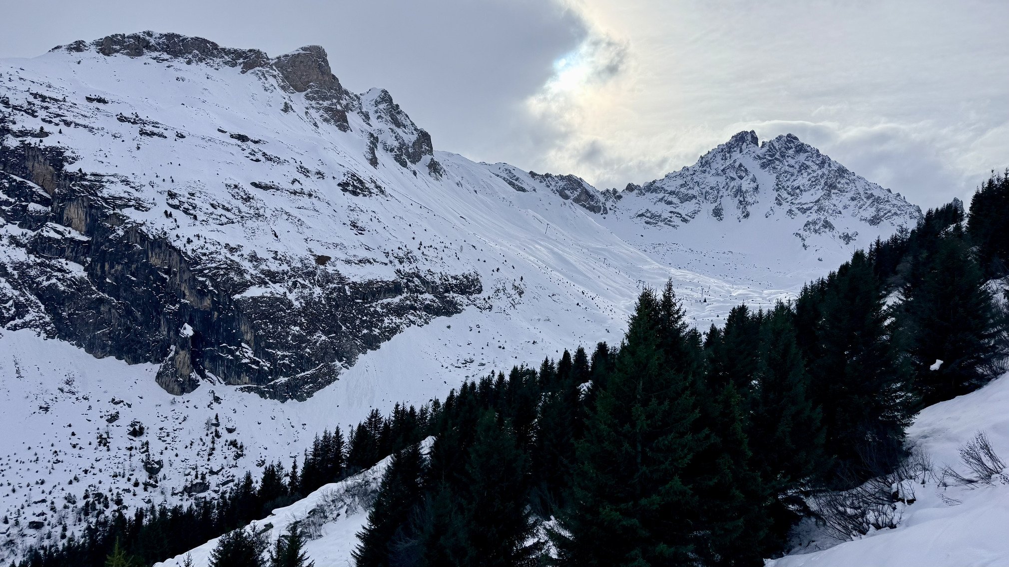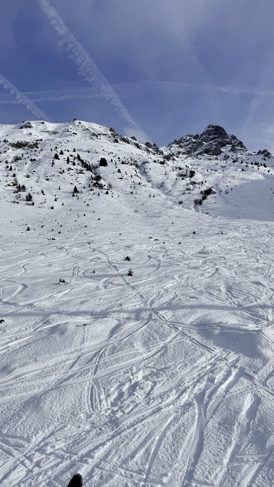 Difficile de mettre une note. Je dirais entre 2,5 et 3. C’est surtout à cause de la météo qui n’est pas terrible, des journées courtes pour cause de solstice et de l’absence de perspective de ski hors pistes pour les 10 jours à venir…. Si on reste objectif ça ski quand même bien sur les hauteurs sur piste.