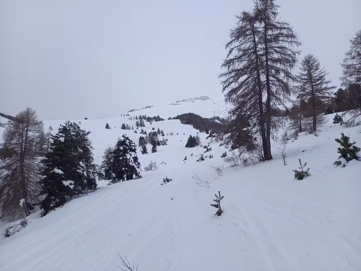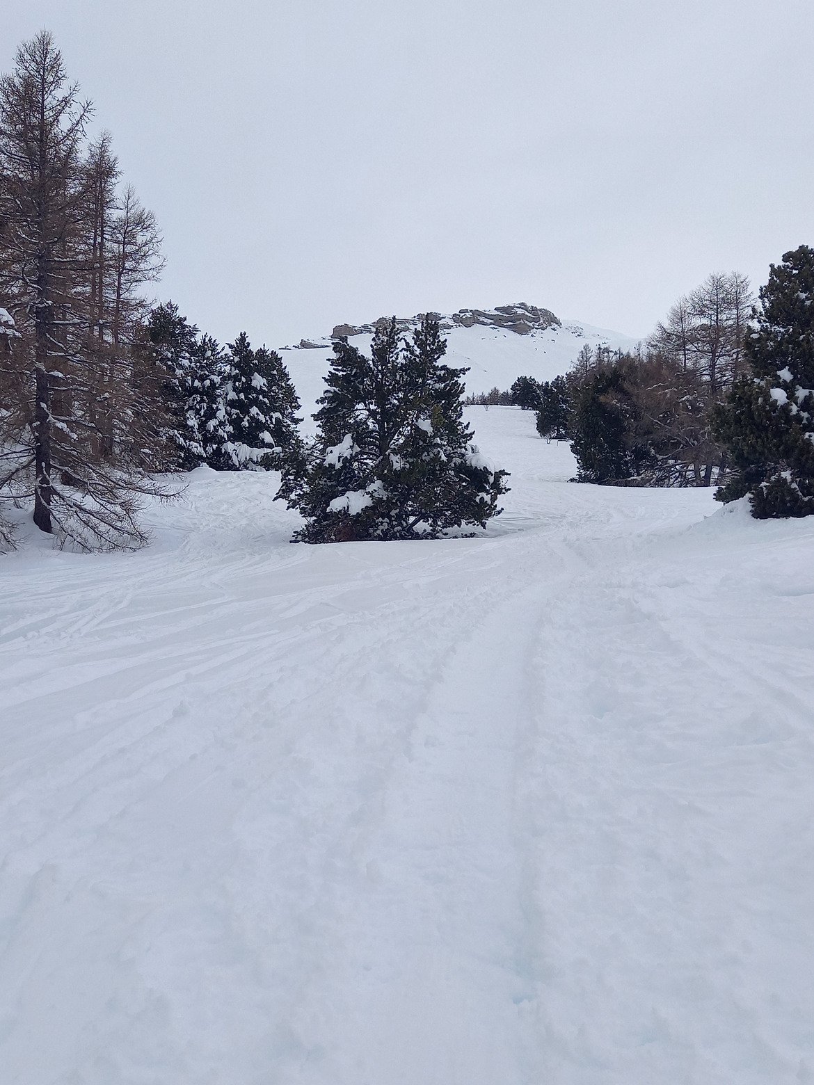 Belle découverte et neige en quantité mais a part 3 virages dans un coin d'arbres, entre la mauvaise visibilité, le fait que le spot ai été très convoité ces derniers jours donc trafiqué de partout, par endroits croûté.... vraiment ce n'était pas la sortie de l'année 😂