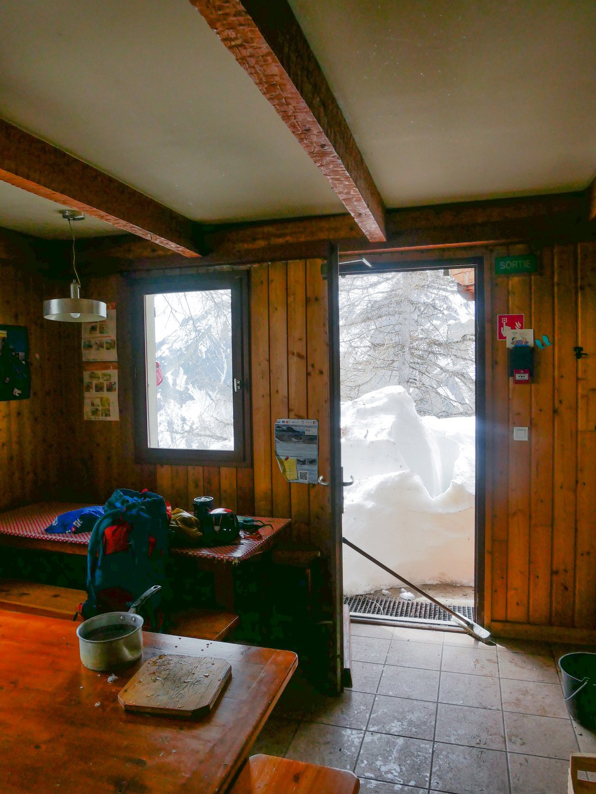 L'escapade commence par 600m de portage au depart de Villar-Loubière. En adret et avec un raide sentier d'été, cela semble être le tarif classique. On planque les baskets dans un buisson, et on chausse les skis vers 1700m pour gagner notre gite pour la nuit. La collation est rapide, car nous visons le Col de la Sée, plein Sud, et si vous avez pris l'air samedi, il ne vous aura pas échappé que le temps était peu frais. Nous remettons les skis, et repartons en direction du col. On trouve quelques brises de pente bienvenues au cours de la montée, et gagnons l'objectif du jour sui nous permet de découvrir le vallon de Font Turbat. Depeautage, descente en moquette à poils long, et on file profiter du charmant refuge situé dans un petit mélèzin.