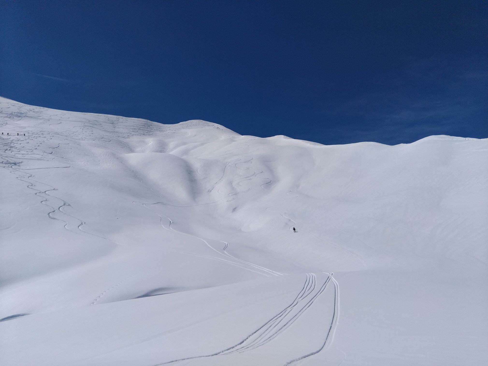 Ciel bleu et chaleur au programme, des 9h, tout est décaillé, et le versant nord garde ma derniere chute de neige au frais. Descente en moquette tout le long, un peu trop meme puisqu'on arrive 100m plus bas que la voiture et nous oblige à remonter dans la foret sans neige.