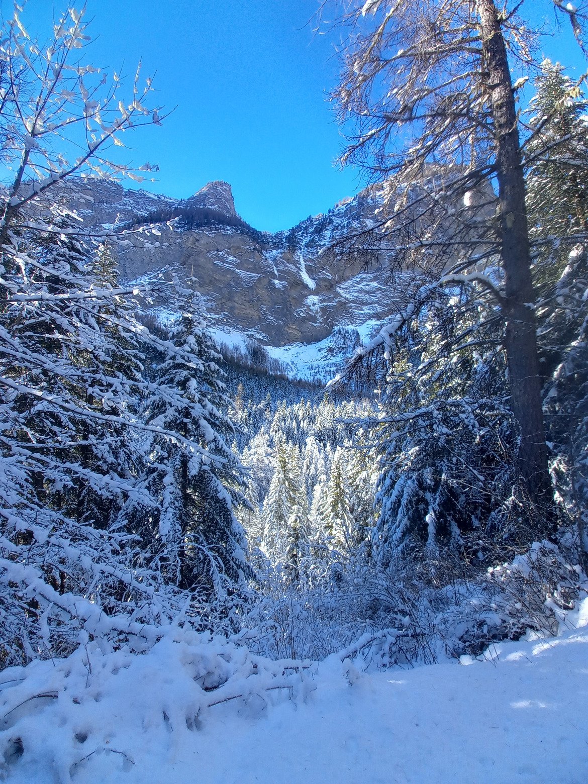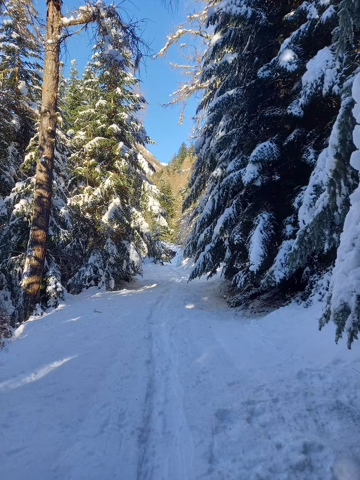 La piste forestiere est bien enneigée, chouette !