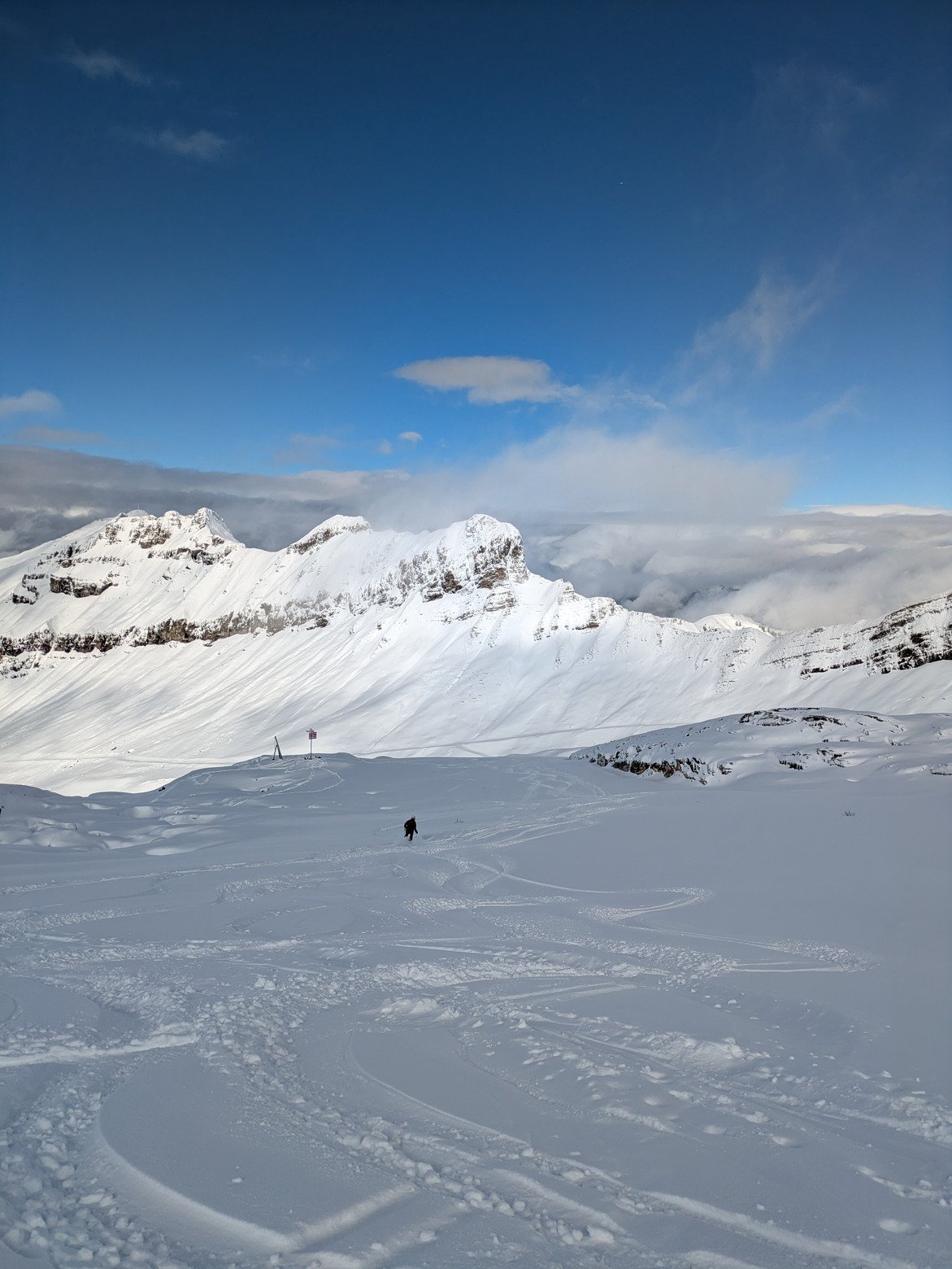 Et surtout : coup de bol avec le soleil qui a fait son apparition ! un vrai régal, visibilité et neige légère, pour une fin octobre que demander de plus ?