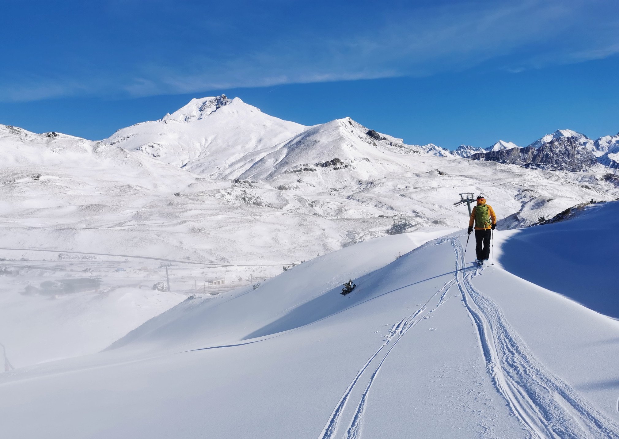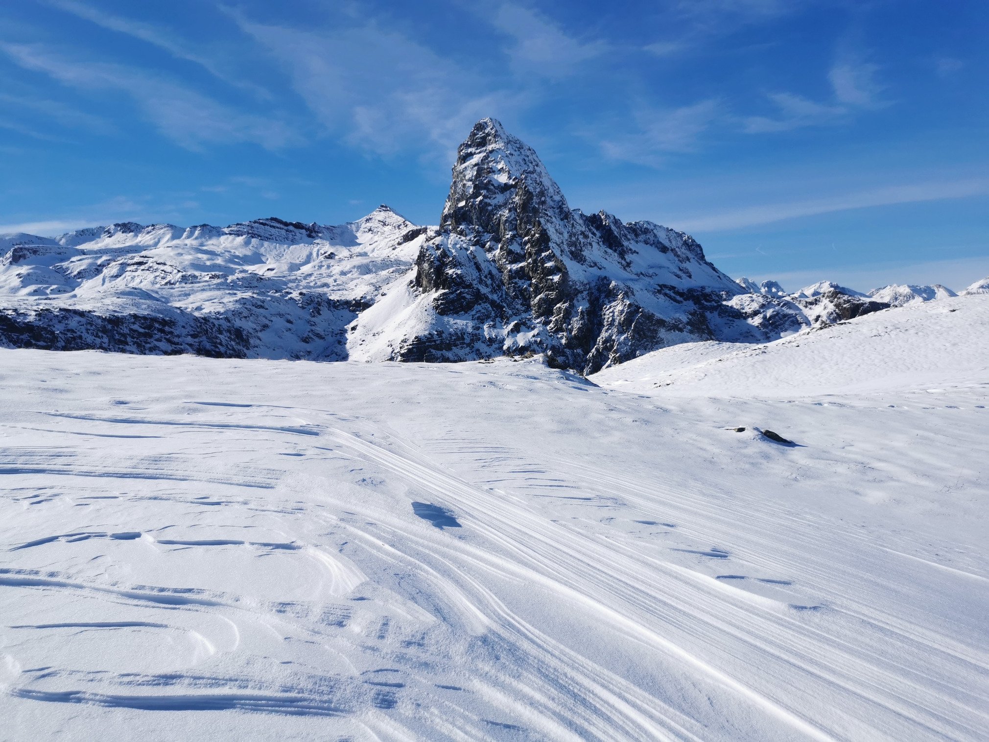 Après avoir découvert un cirque d'Aneou inskiable car poncé par le vent, nous nous sommes rabattus sur le versant Espagnol, à Formigal, où les canons donnaient à plein régime. Ce qui nous a permis de sortir les skis et de faire un peu dénivelé jusqu'au sommet où la neige était un peu plus conséquente...