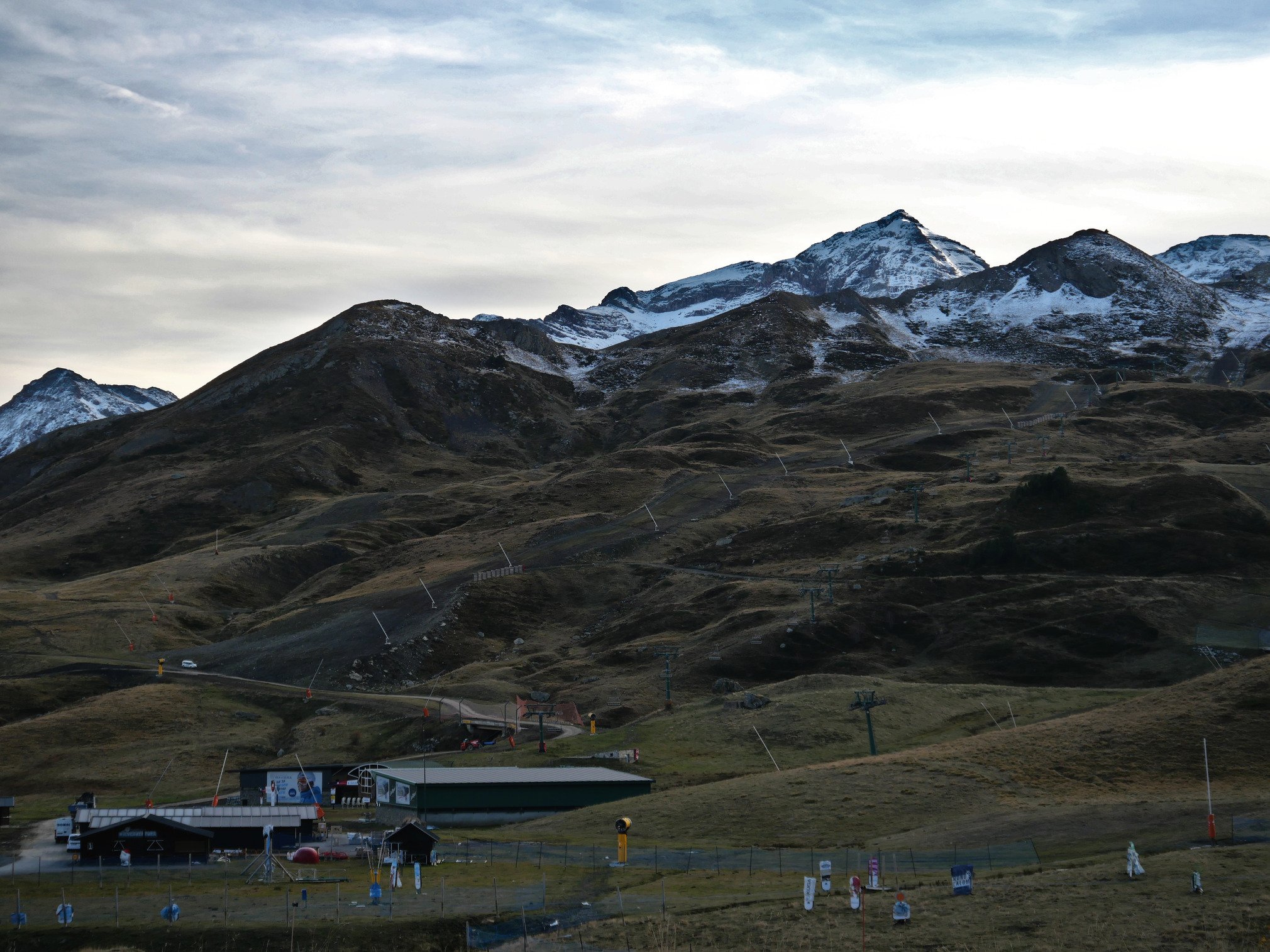 Après Artouste, complétement sec, le si bon pic de Sesques (photo 3) faisait presque envie s'il ne fallait porter les skis au moins sur 400 m d'altitude. Une fois arrivé au col de Pourtalet, le spectacle était triste car toute la neige tombé le week-end dernier. Le pic du Midi d'Ossau était tout pelé! Contrairement aux Hautes Pyrénées, les Pyrénées Atlantiques ont été moins servis et surtout plus haut en altitude. Au niveau neige, c'était pas mieux pour la station de Formigal (photo 4), les nouveaux canons et pistes attendent le froid. Ils ont aussi construit cet été un énorme lac collinaire à 1800 m d'altitude pour alimenteter tout ça.