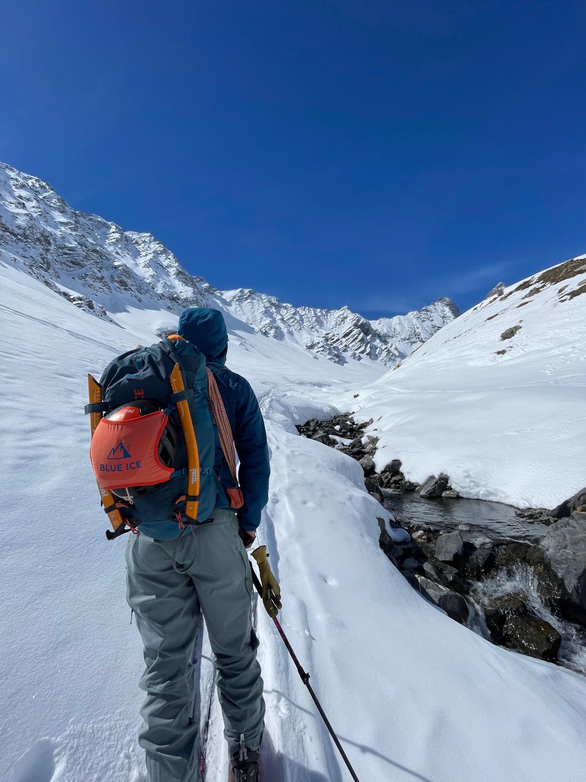 Je propose la montée au col des Aiguilles, mais la forme de la team nous fait poursuivre vers l'aval. Apres un etage crouté encore, meme en raide Sud, on retrouve de la transfo sympa voire meme de la poudre dans le fond du vallon et on se laisse glisser jusqu'à l'auto.