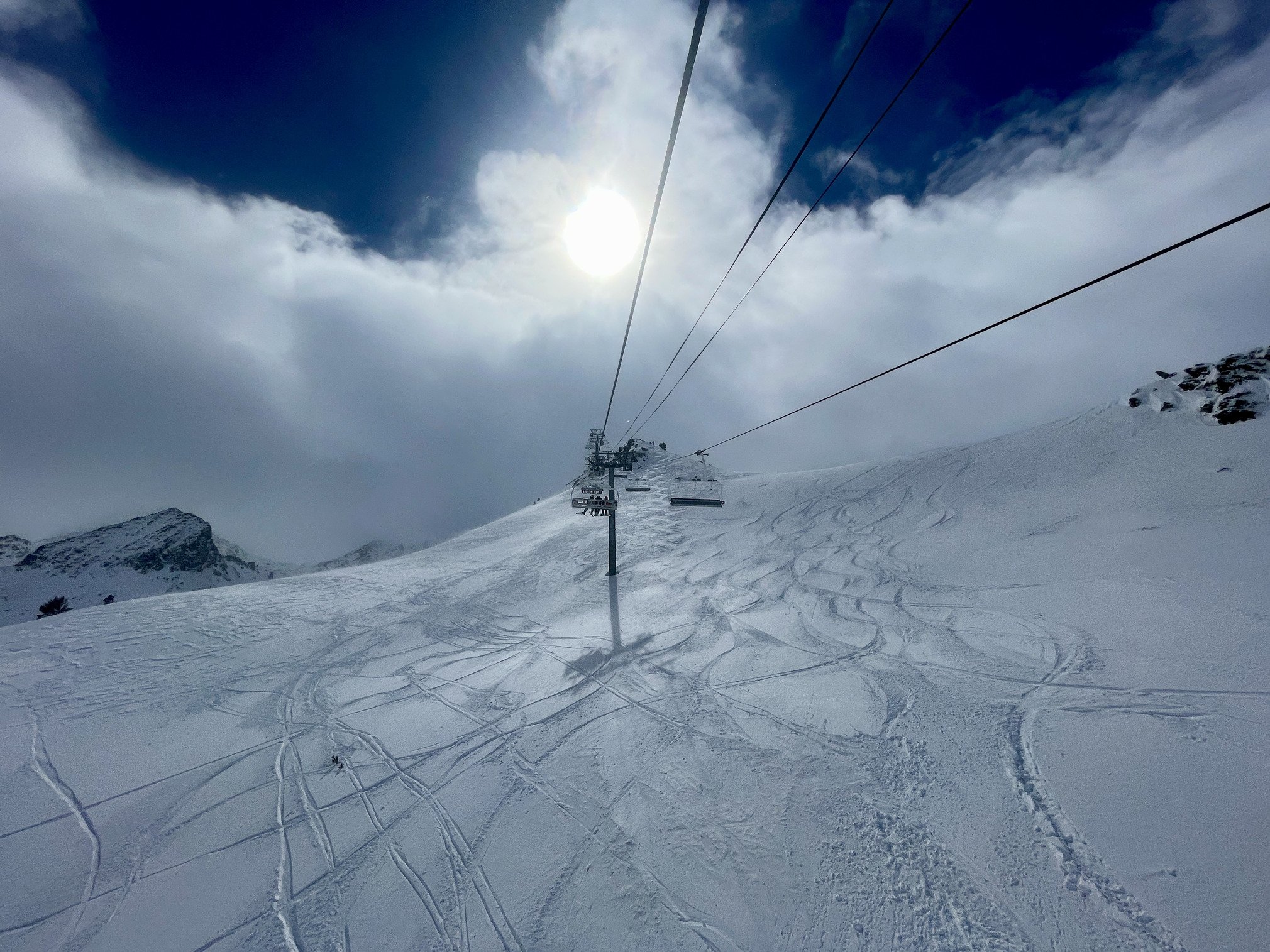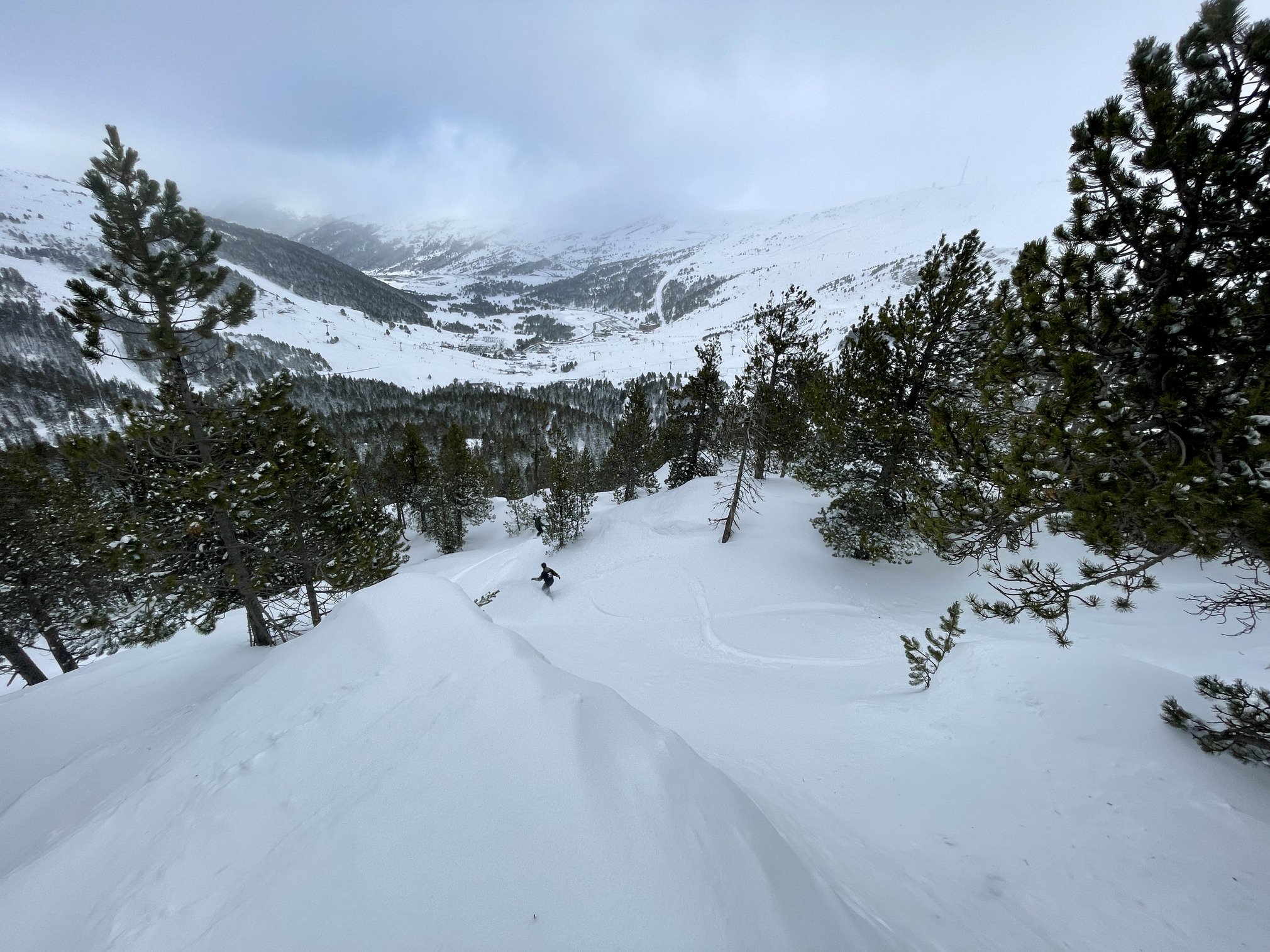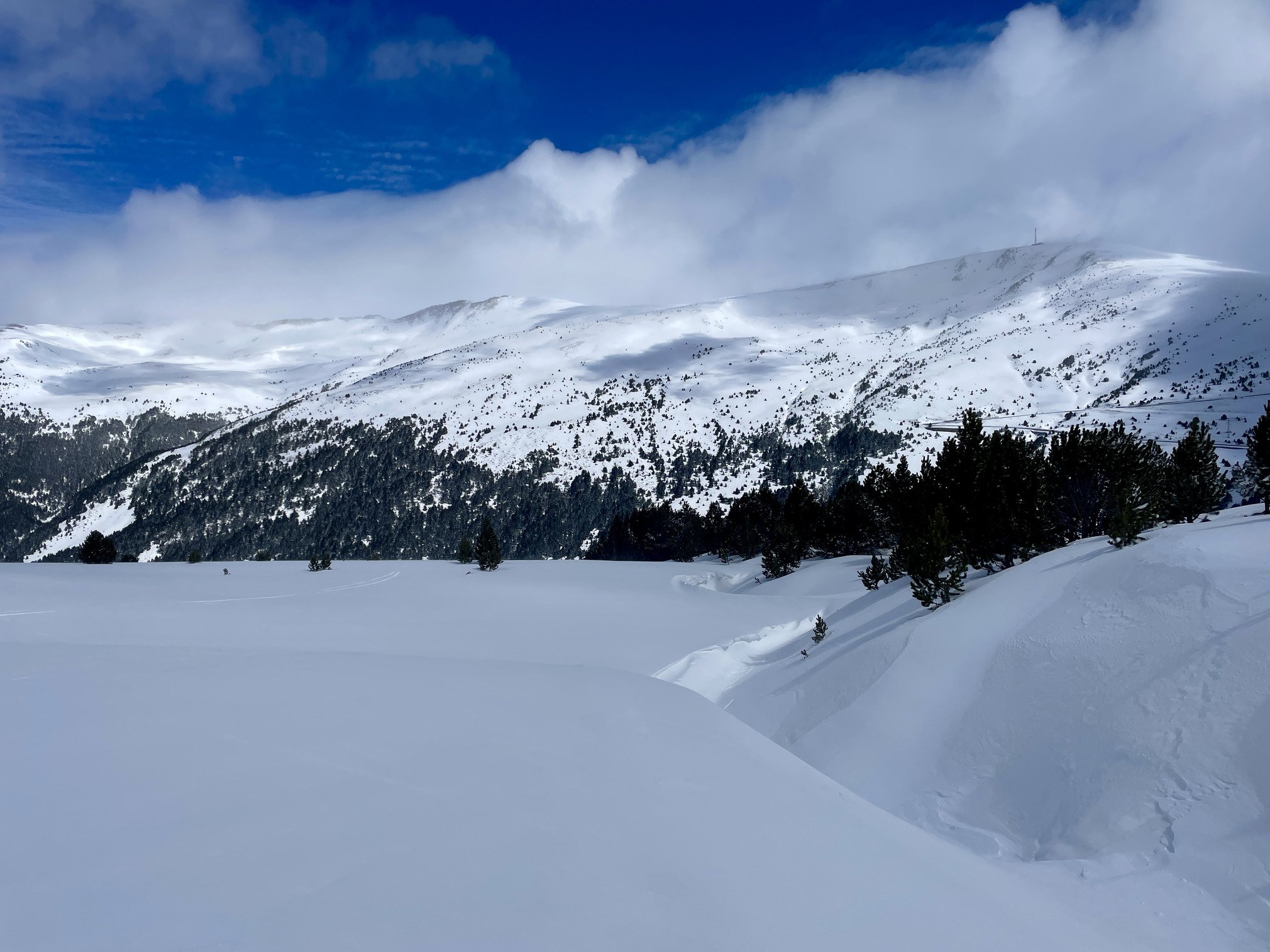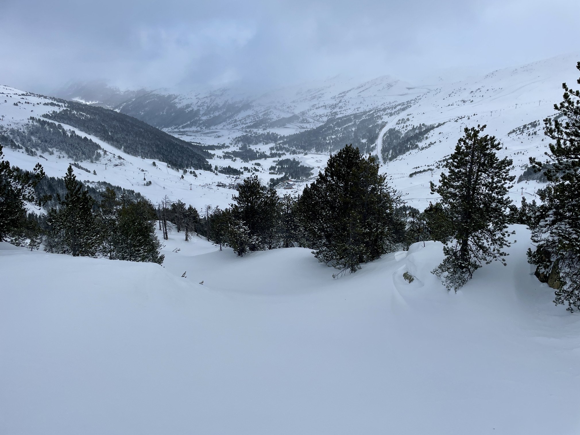 Après le closing ariégeois épique du dimanche, impossible de s’arrêter là. Cap sur Grandvalira lundi, la grosse machine andorrane. Arrivé sur place à 8h30, la fenêtre météo annoncée n'était pas là évidemment, mais c'était encore mieux que la neige ne voit pas le soleil et reste fraîche. Du coup go en forêt pour avoir une bonne visi, ou 30cm de fraîche immaculée avec zéro traces, merci les remontées fermées la veille. Pendant 3 heures, on a tourné en boucle, à tracer comme des affamés pendant que la majorité restait à l’écart. Finalement le soleil est sorti vers 14h, transformant rapidement la neige, Juste le temps d’aller chercher quelques runs en altitude… avant que la tempête et le vent ne reprennent le contrôle. Une fin de saison incroyable cette année pour les Pyrénées annonçant une bonne après saison en ski de randoch.