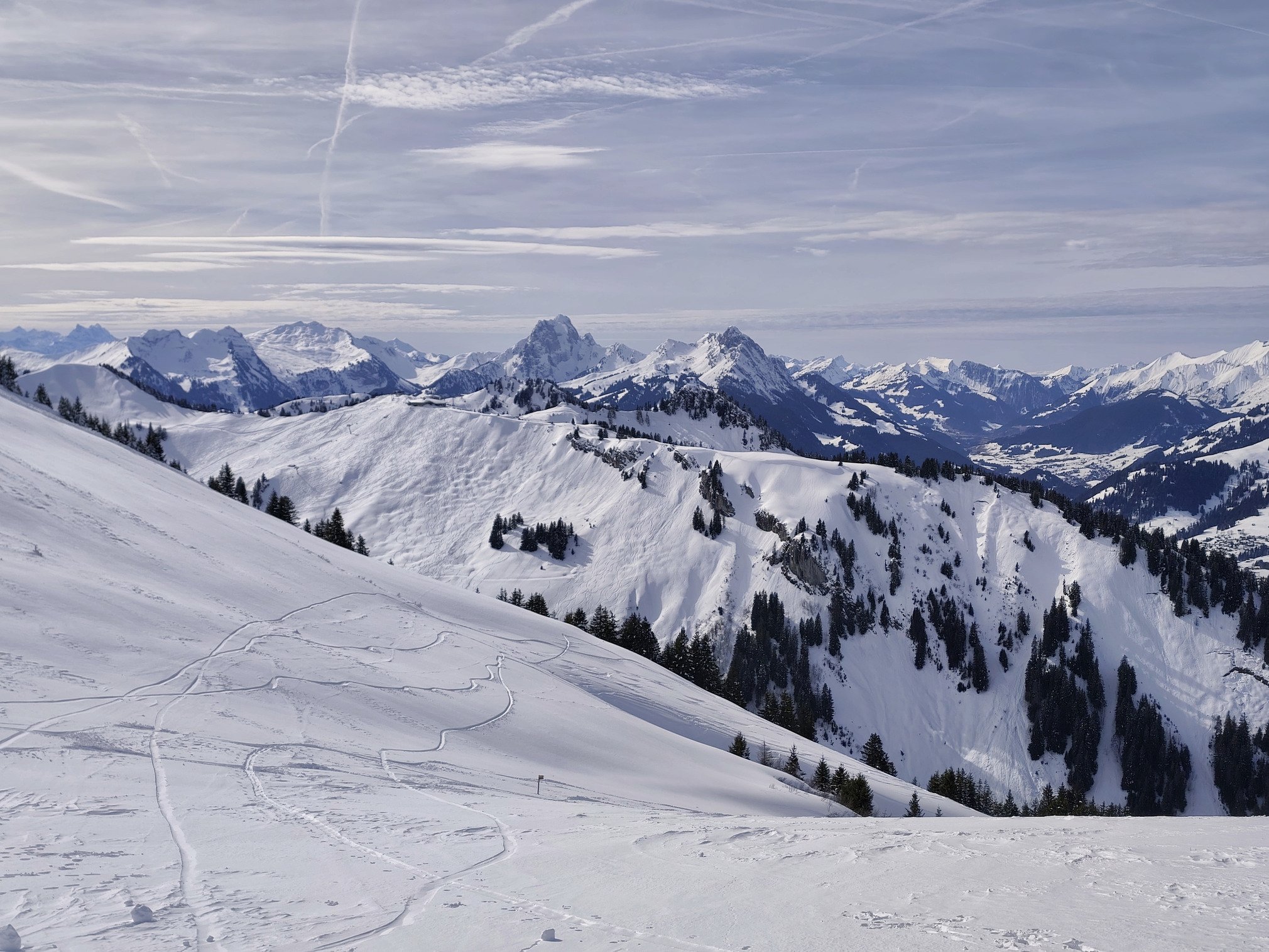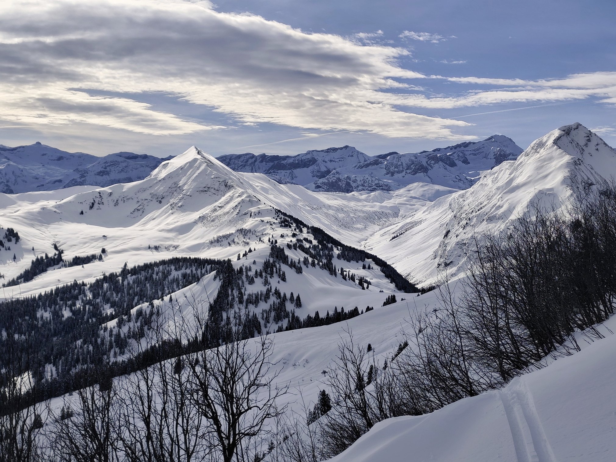 L'enneigement naturel commence autour de 1200m en versant nord. L'accès au secteur de St Stephan est ouvert, nous décidons d'y aller directement. La fréquentation est énorme. Nous reprenons 20min d'attente au télésiège, ça commence à sentir la loose.