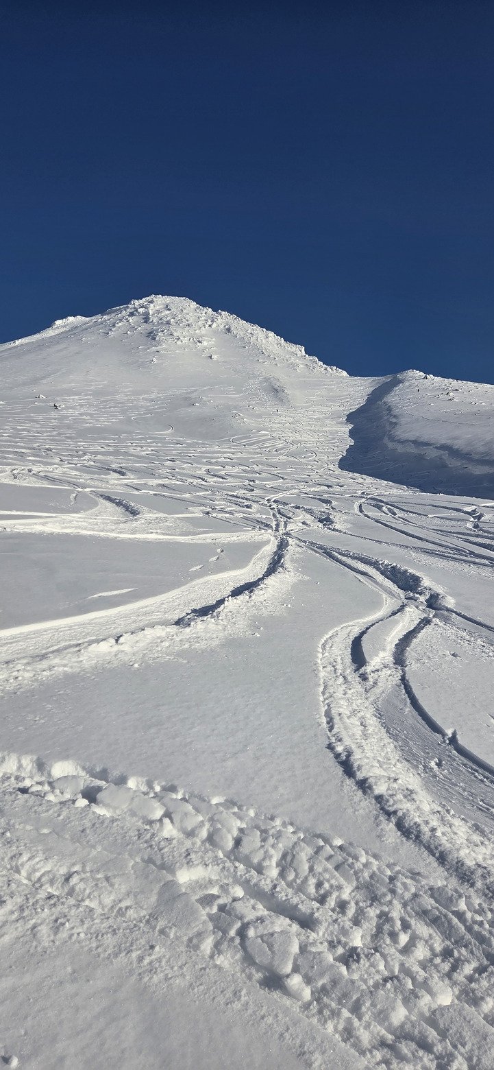 Un mélange de ski de randonnée et de marche pour atteindre les fumerolles et les bols supérieurs, avec des lignes sauvages et peu tracées. Les vues étaient tout simplement spectaculaires, entre paysages volcaniques et immensité blanche. Effort à la montée, récompense maximale à la descente : du grand ski, brut et authentique.