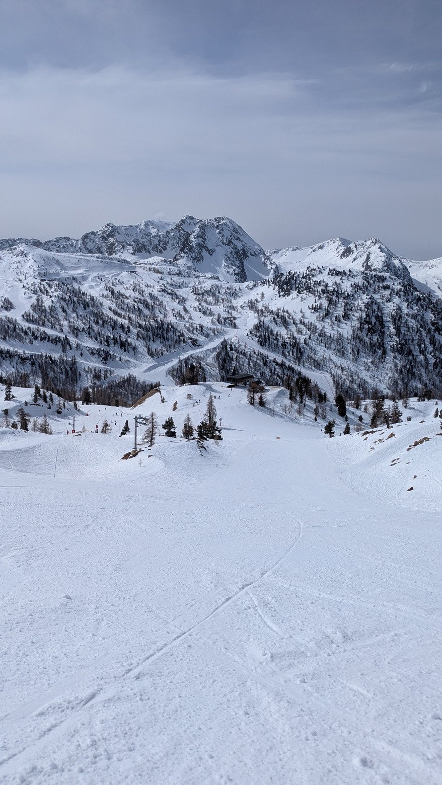 J'ai pris bartavelle haut (fermée) la piste est comme laissée à l'abandon. Il y a des mélèzes qui dépassent de plus d1m50 dessus alors qu'on a 2 m sous les pattes. Pour le coup la neige était pas trop mal dessus.