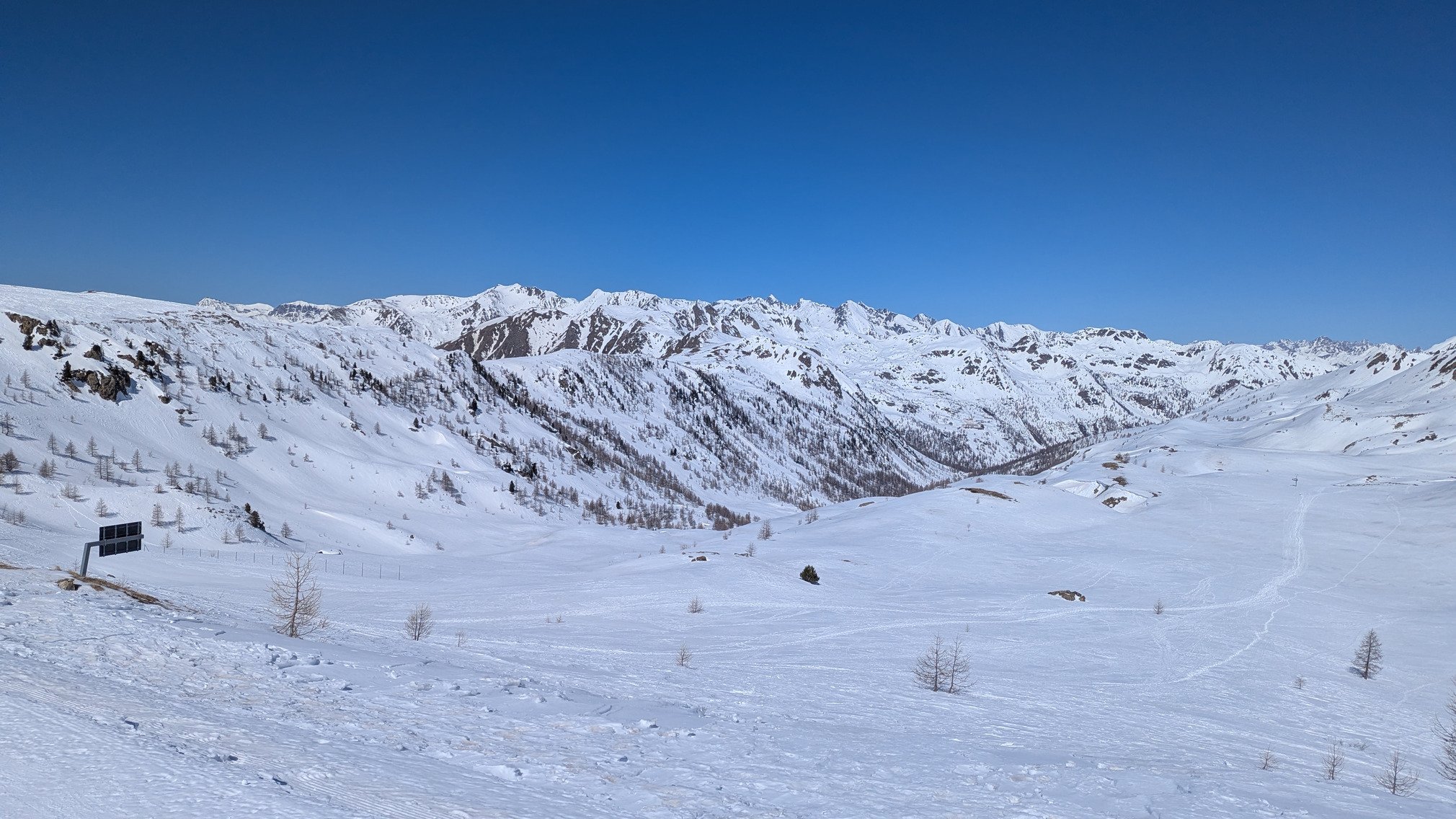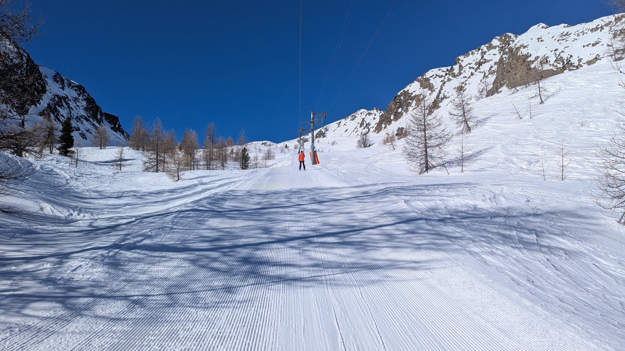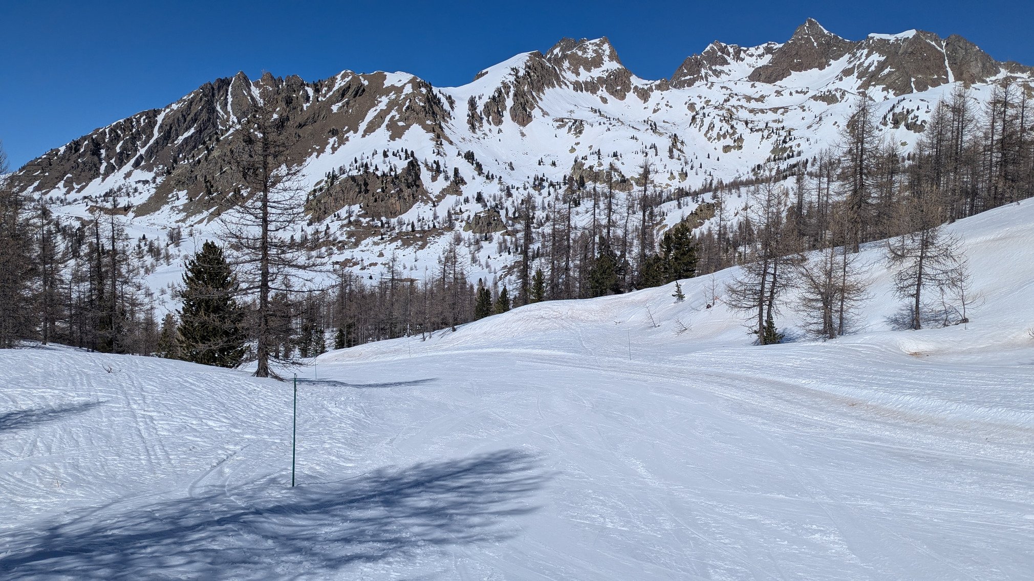 Conditions typique de printemps où il faut tourner avec les expositions. Dur puis moquette puis mou. Le soleil est haut et même les zones les plus abritées sont désormais au soleil.