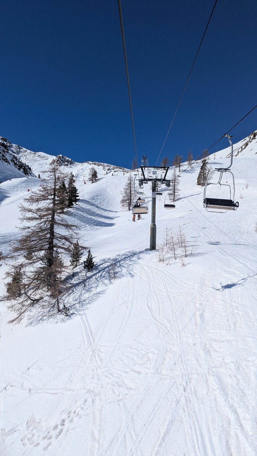 Températures très très douces. On dépasse largement les 10°C à 2000m. On ressent l'augmentation des prix de l'essence sur la fréquentation. C'est toujours calme en avril mais là c'est vraiment très calme. Idéal pour les enfants.