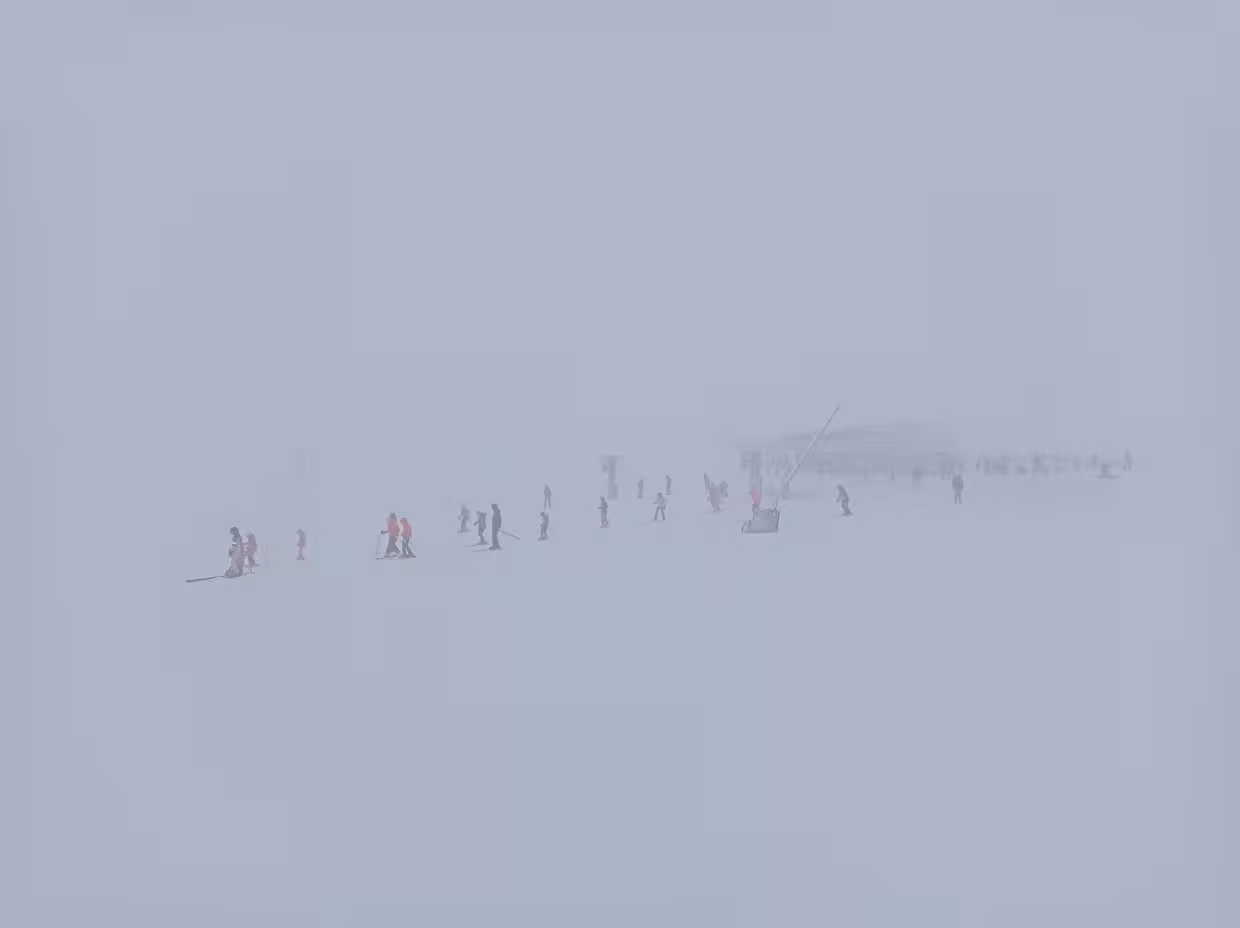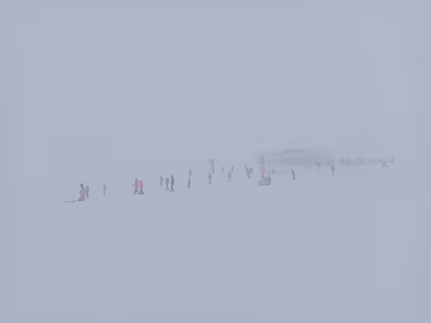 Très mauvaise voir aucune visibilité aujourd'hui mais qu'est-ce que c'est doux sous les skis. Ça ne sera pas la plus grosse sortie de la saison, seules les pistes basses sont ouvertes et vraiment beaucoup de monde. Du coup ben ça coince aux remontées bien évidemment.