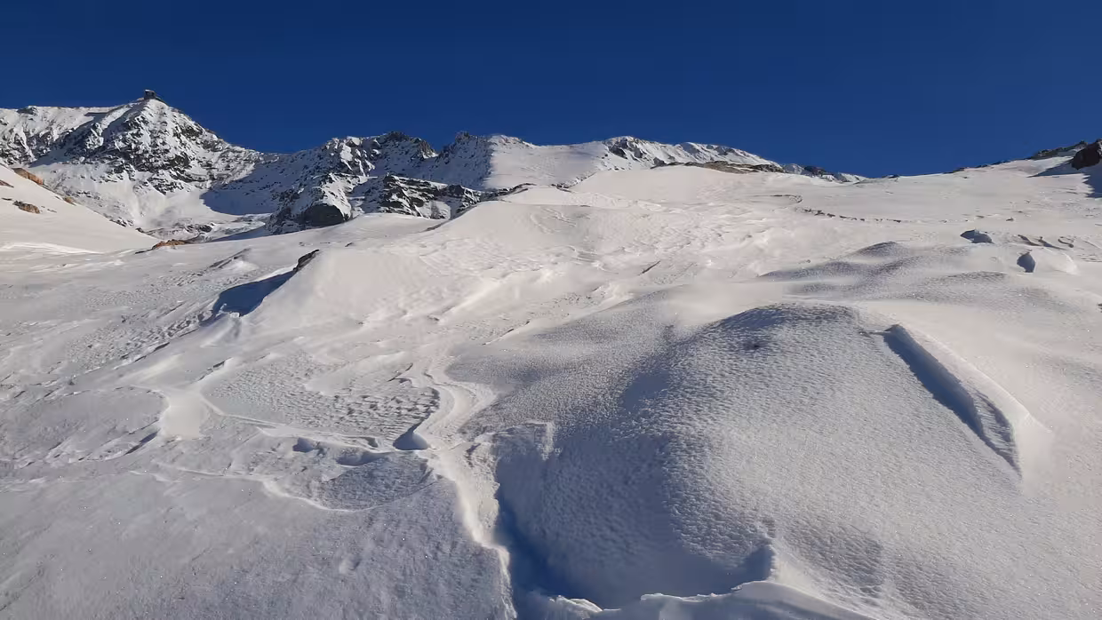 Pour le ski de rando, il faut aller chercher bien haut ! Au dessus de 2300 m. Le meilleur ratio en attendant l'ouverture : montée à pied et descente mixte en mode trek et ramasse !