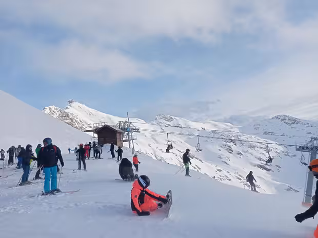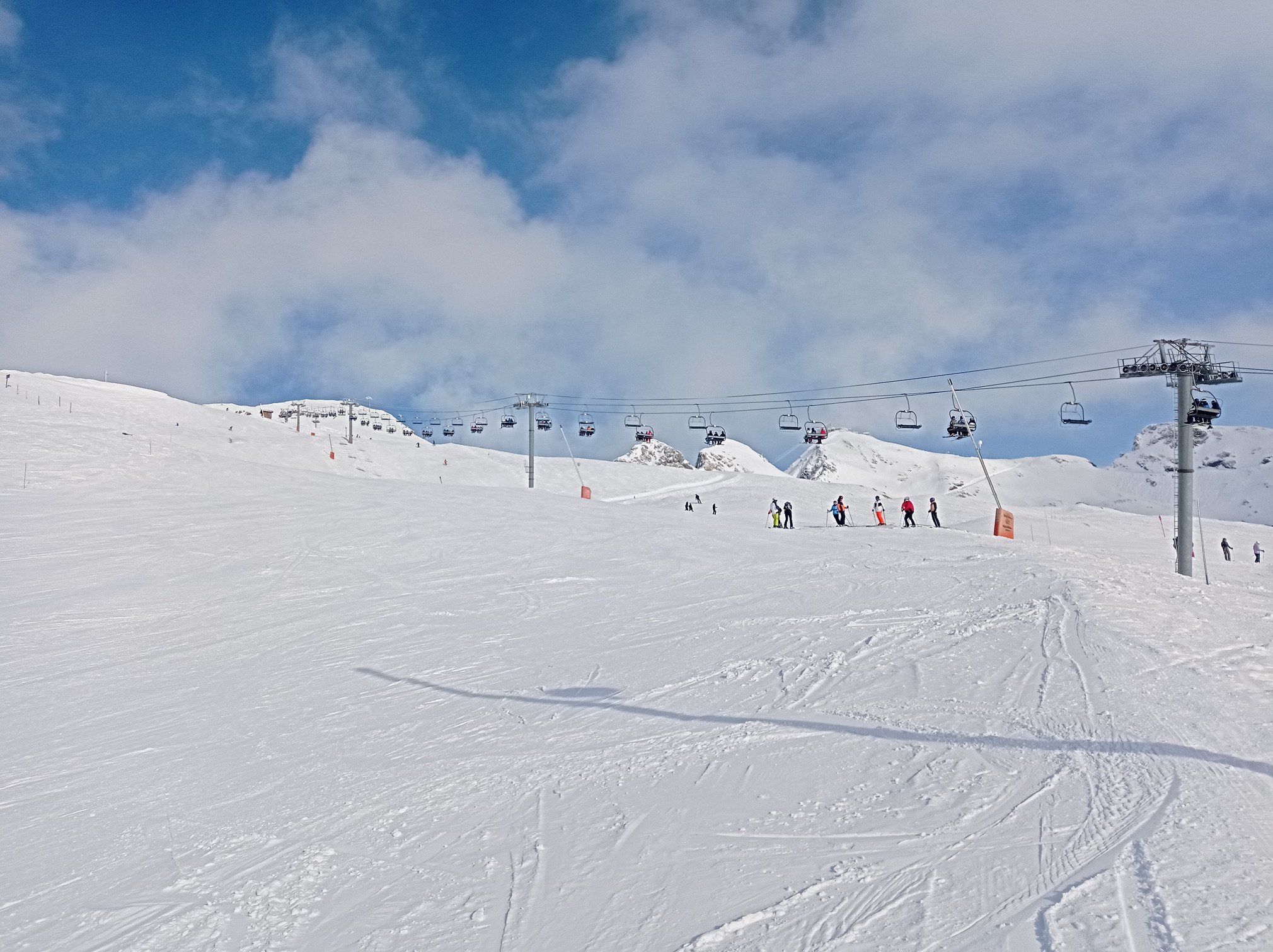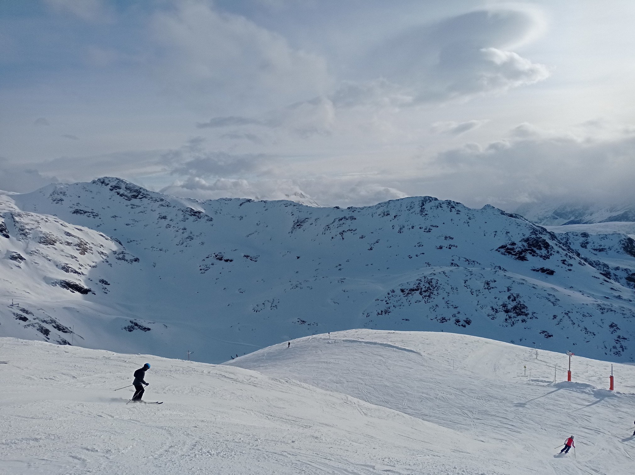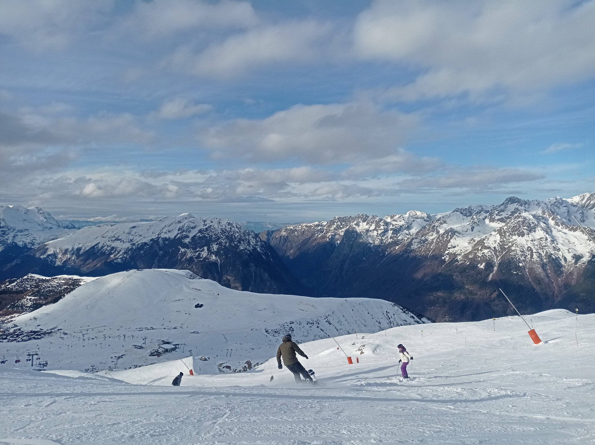 Ambiance vacances à l'Alpe d'Huez ce dimanche. Ça y est, ils sont arrivés et ils débutent pour la plupart leur semaine de ski. De beaux sourires sous les casques et de belles rigolades sur les pistes. Je choisis de monter rapidement à Marmottes 3 pour profiter de la belle neige. Réservation rondement menée depuis l'application en montant dans le Pic Blanc 2 . Arrivée à Marmottes 3 avec un peu d'avance sur mon créneau mais pas de soucis pour les équipes de la sata qui sait s'adapter et ça c'est vraiment sympa ! Bon en même temps, ça va , même sans réservation c'est ultra fluide et ça de partout. Belle session sur l'Herpie qui est vraiment au top, idem sur la cristallière et la rouge. Je choisis de remonter plusieurs fois par le télésiège, histoire d'en profiter. Ça souffle mais ce n'est pas désagréable, loin de là. Puis descente avec Marmottes 3 pour éviter de prendre sarenne et surtout profitez de skier sous marmottes 2. C'est excellent aussi, tout comme au lièvre blanc. Ça se corse au 1 er tronçon bien évidemment puisque tout est en mode zippette carrelage le matin. Retour sur Villard Reculas avec un peu d'avance sur le timing, c'est LA bonne excuse pour s'arrêter à la Bergerie en attendant ma championne 😜