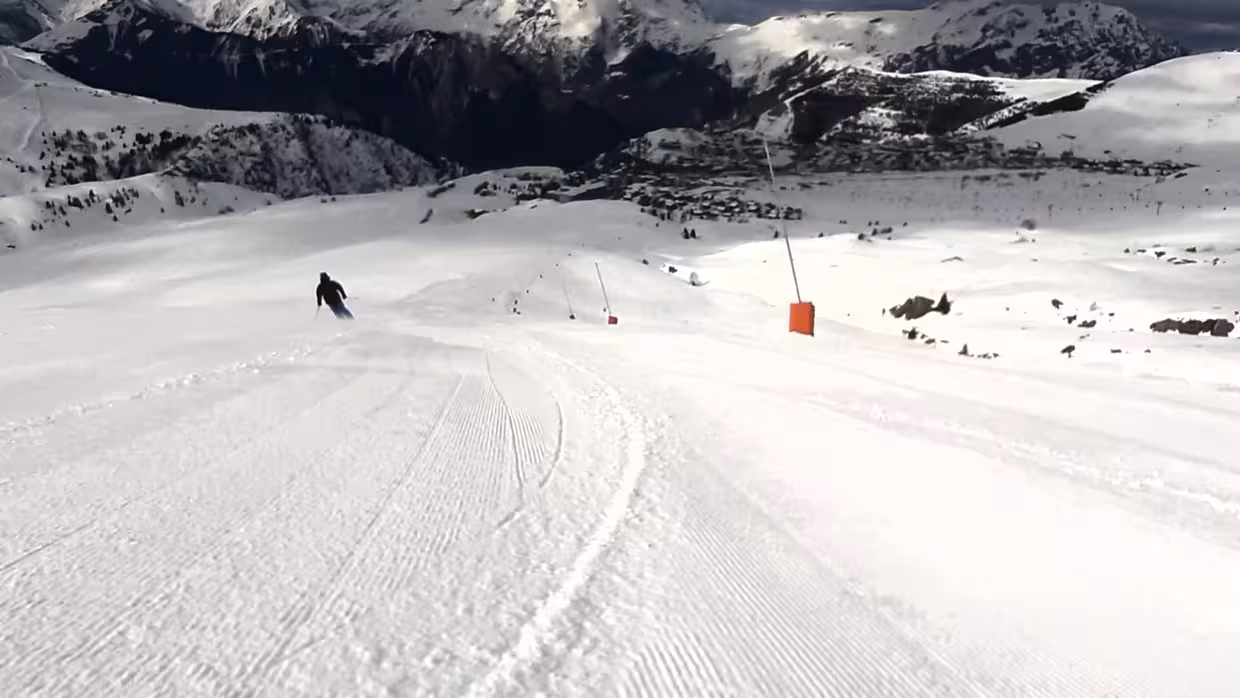 Sarenne via la les Marmottes le matin était pas si mal !mis a part le brouillard jour blanc sur le haut. Juste au dessus du depart du télésiege de l'Herpie la visibilité s'améliore nettement voire méme de bonnes éclaircies. Donc idéal pour carver durtout que le damage le permet, parfous des lignes de grosses bouloches, et la neige est douce. Sur la partie basse c'est un peu plus dur pas encore bien décongelé car timing encore matinal mais on peut bien tracer carving toit de même ! Pas grand monde voire personne donc nickel !