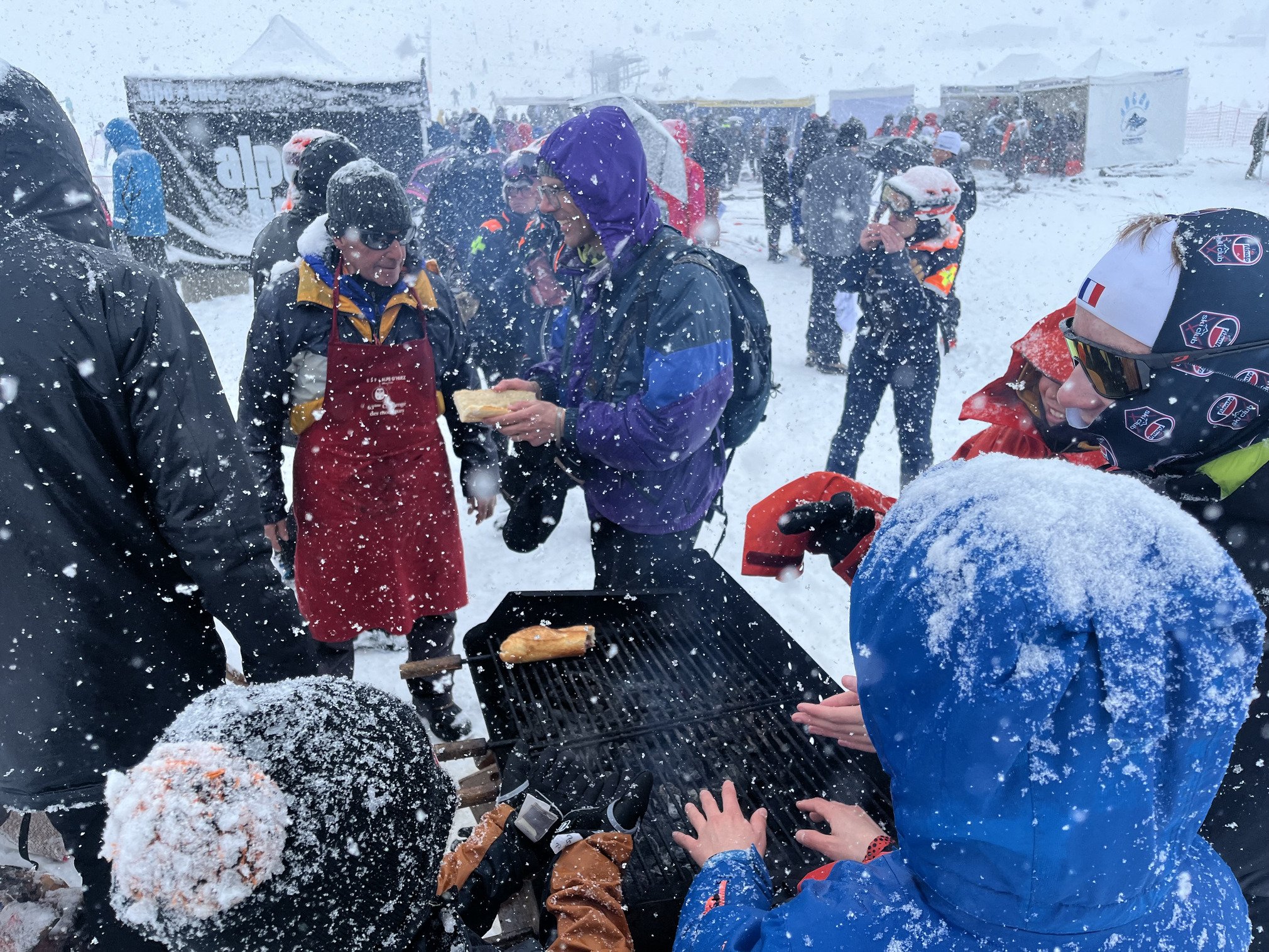 Jour blanc complet au programme… Difficile de distinguer où est la piste et où est la poudreuse avant d’y avoir planté les spatules… On finit trempés et les enfants se réchauffent les mains au dessus du barbecue après avoir mangé les saucisses 🤪