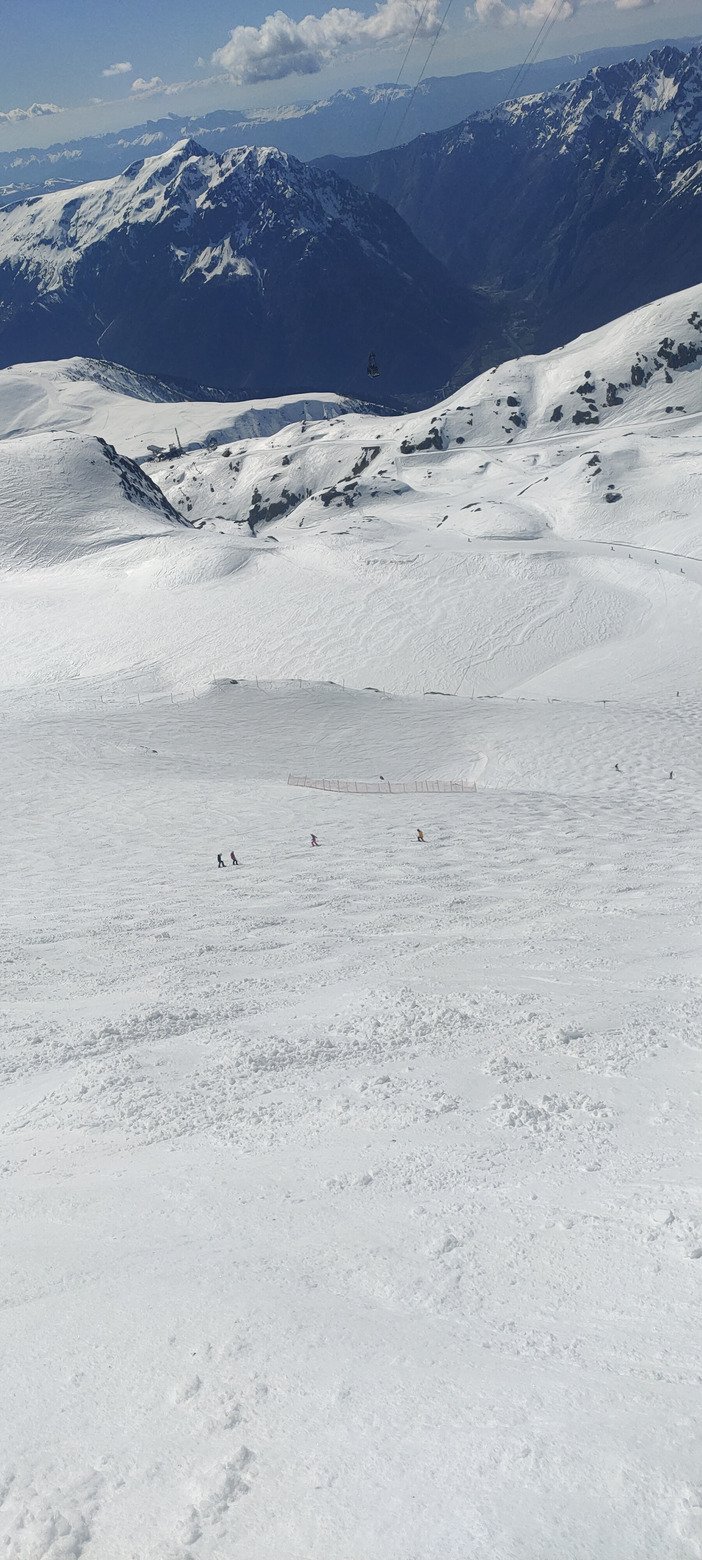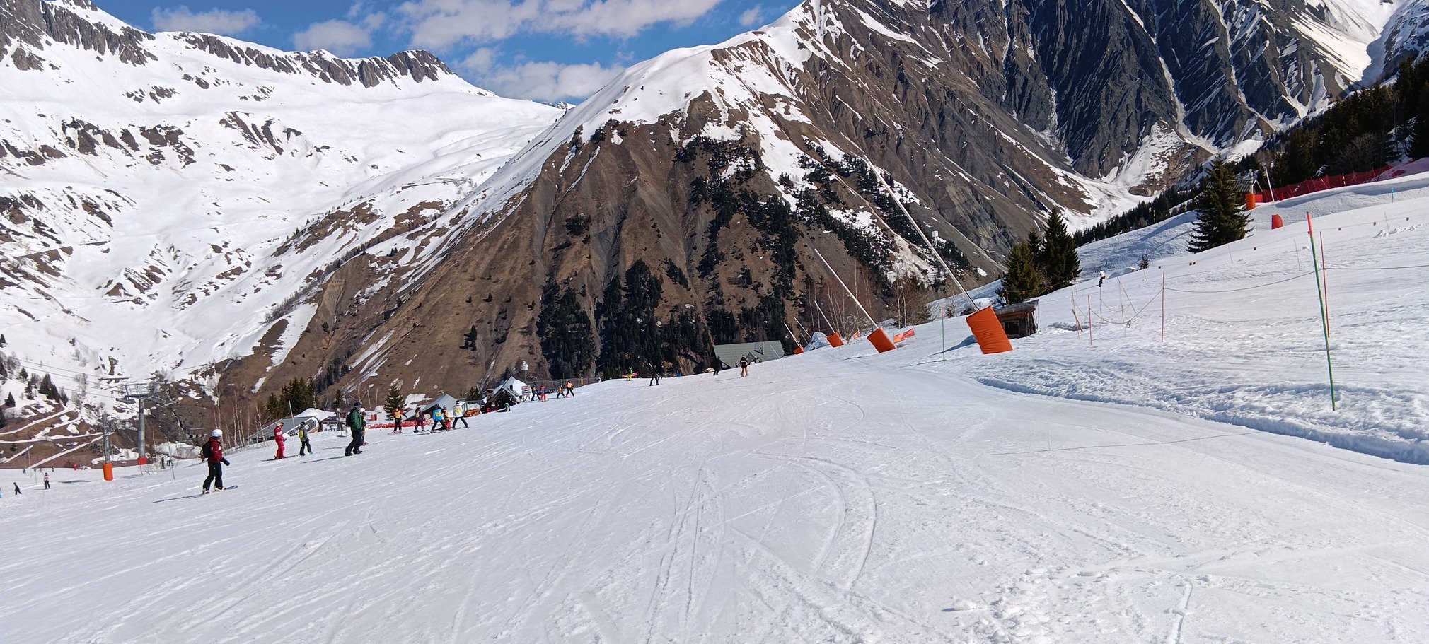 Avec les conditions quasiment estivales de ce lundi de Pâques et quand même du monde sur les pistes (même si on n'a pas fait de queue aux remontées), il était évident que la qualité du ski allait se dégrader assez rapidement. L'objectif du jour était donc d'aller sur les pistes les moins fréquentées, afin d'éviter d'avoir tout de suite de gros paquets de soupe.