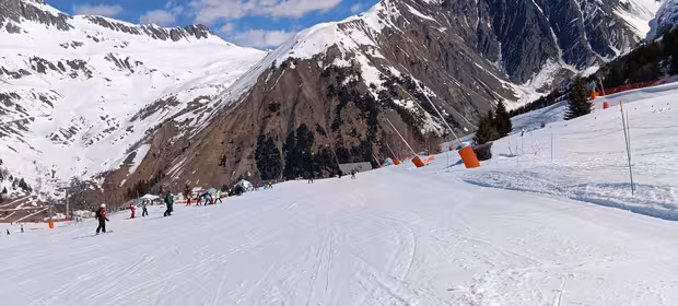On file ensuite sur Vaujany par la bleue des Chalets, agréable mais qui commence presque à coller alors qu'il n'est pas encore 11h 😱. C'est en revanche tip top sur les pistes bleues du TS Montfrais. Personne sur les pistes, léger décaillage, parfait pour carver ! Un poil moins bon sur l'edelweiss (la piste bleue du TS Vallonnets), principalement parce qu'il y a eu plus de passages. On enchaîne avec une Vaujaniate qui reste plutôt rapide, malgré quelques petits paquets de neige qui se forment.