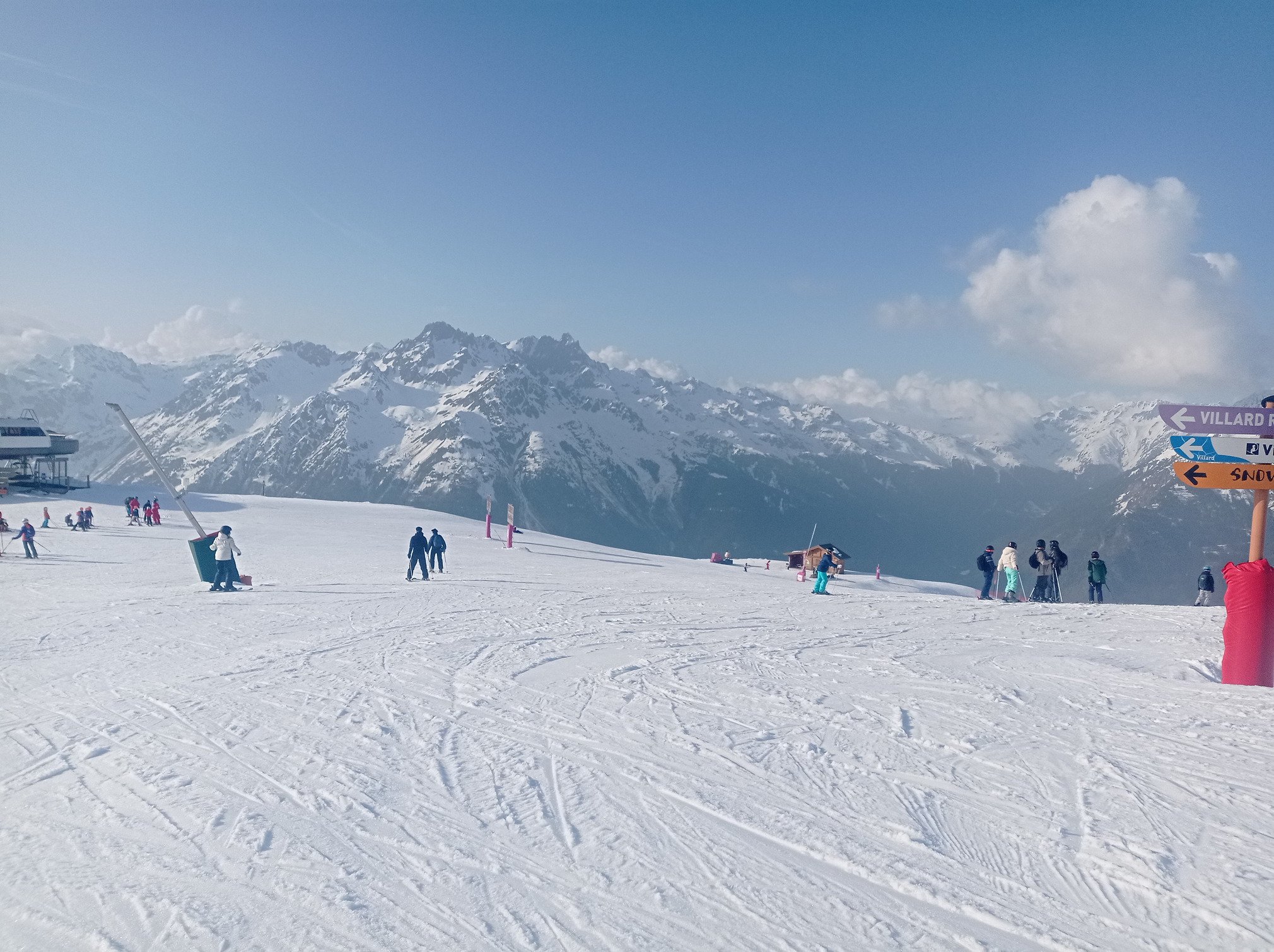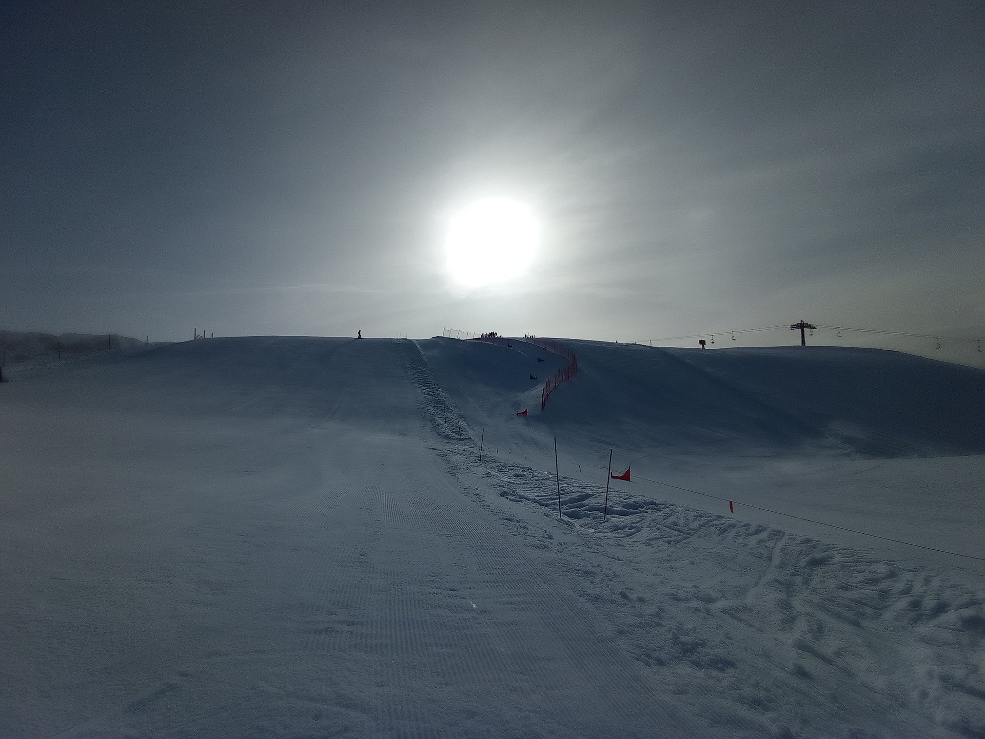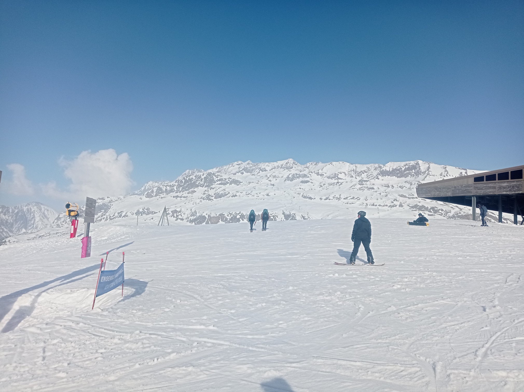 Quelques pistes entre 2 manches histoire de profiter de ce beau soleil et des conditions d'enneigement toujours très appréciables. Neige pas mal dure ce matin tôt mais ça se détend rapidement compte tenu de la chaleur. Peu de monde aux remontées, ça nous avait manqué !