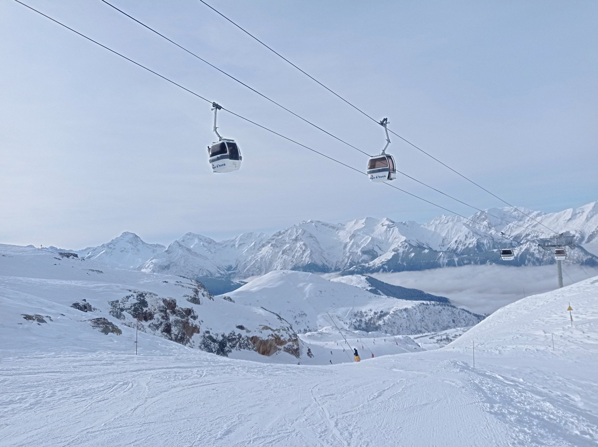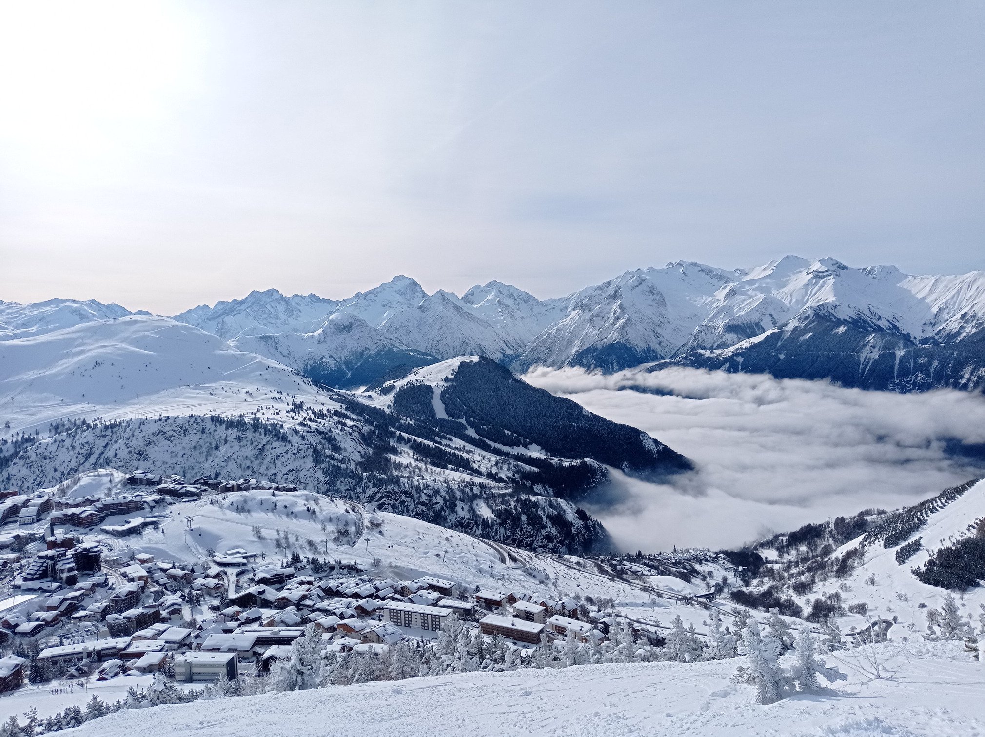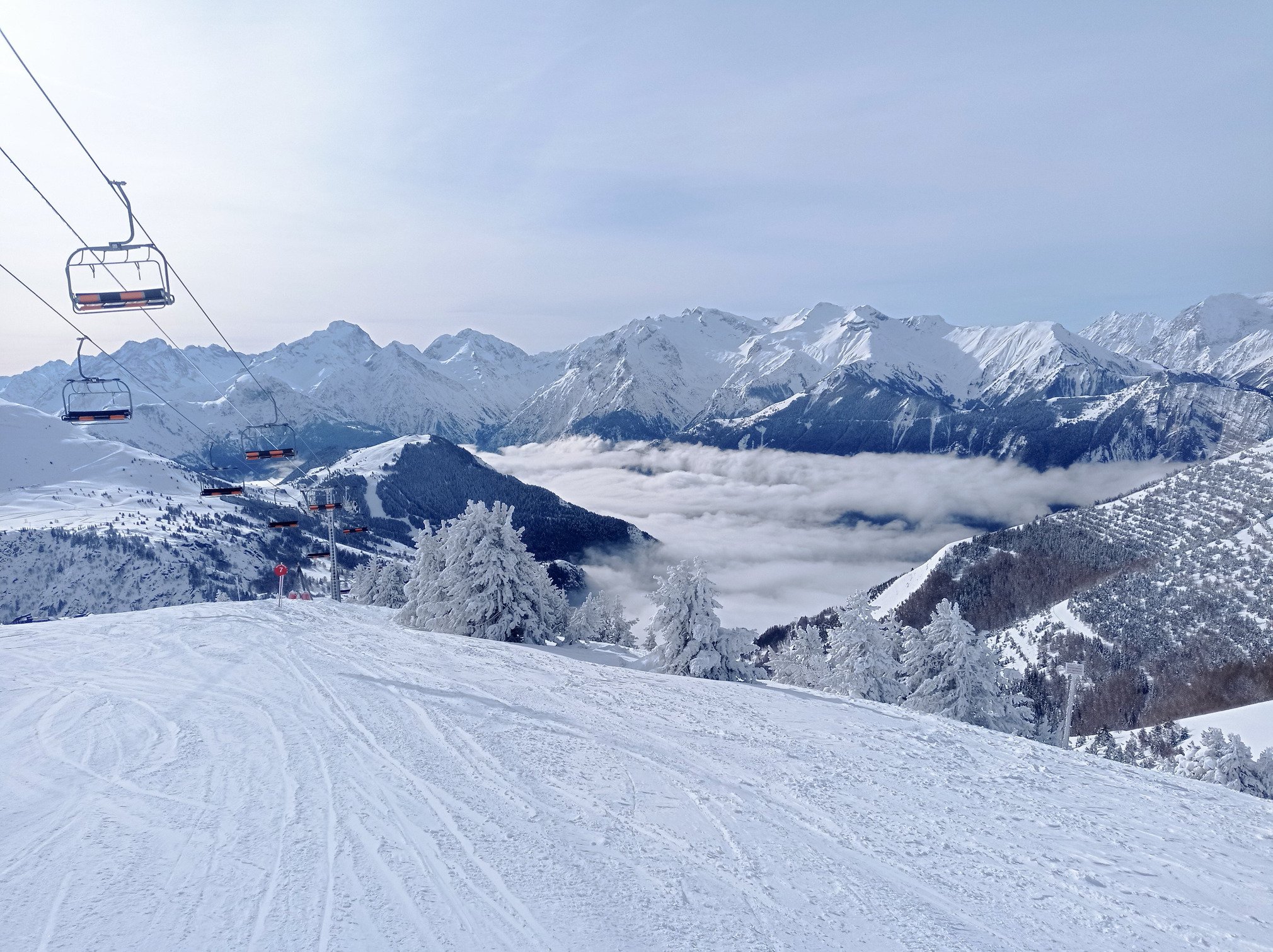 Magnifique ciel bleu ce matin et de la neige bien froide sur l'ensemble du domaine. Montée rapide en haut du Pic blanc 2 avant que la foule arrive. Pic blanc 3 pas ouvert, ça semble bien souffler là haut. Direction Marmottes 2 pour tenter Marmottes 3. A mon arrivée, ça a l'air en bonne voie pour l'ouverture mais je décide finalement de ne pas perdre de temps à attendre et opte pour de jolies descentes sous Marmottes 2. Petit stop tout en bas du déversoir à cause d' une petite coulée de neige qui restera finalement bien sur le côté. Un peu plus d'affluence à partir du milieu de matinée, je rejoins la grande sûre avec de belles bosses toutes moelleuses et des sapins chargés en neige. Magnifique 🤩. Retour sur Villard par la rouge du petit prince (Souveraine) totalement déserte par rapport aux autres pistes. Voilà une bien belle matinée au dessus des nuages 😄