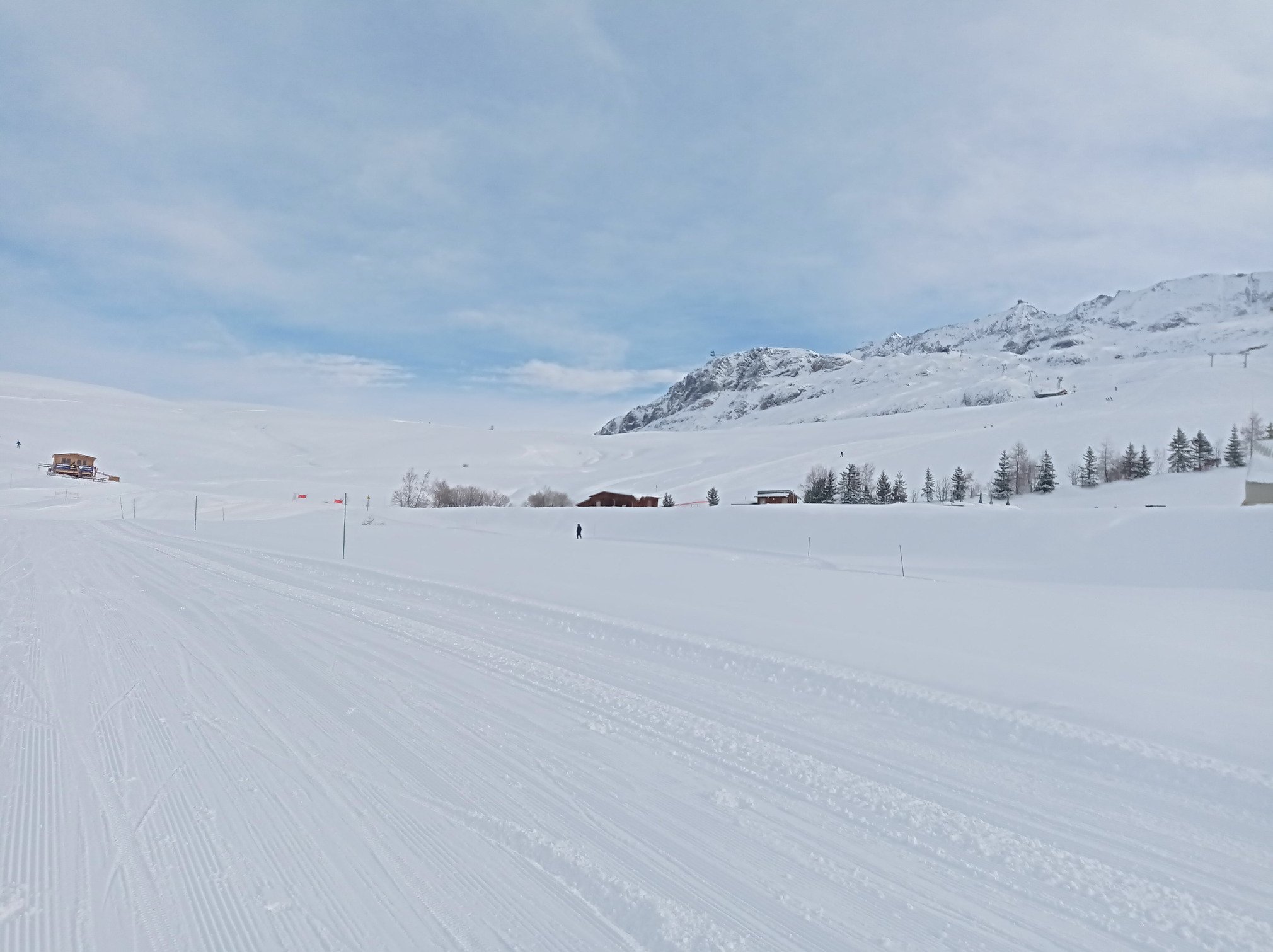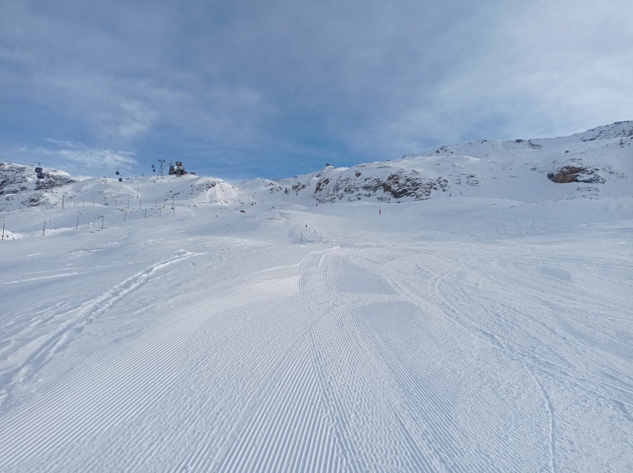 Petit tour au 2ème tronçon où tout est globalement très bon. Même le soleil semble vouloir être de la fête. La piste qui rejoint Oz depuis le pied de la chamois donne bien envie avec quasi zéro traces.