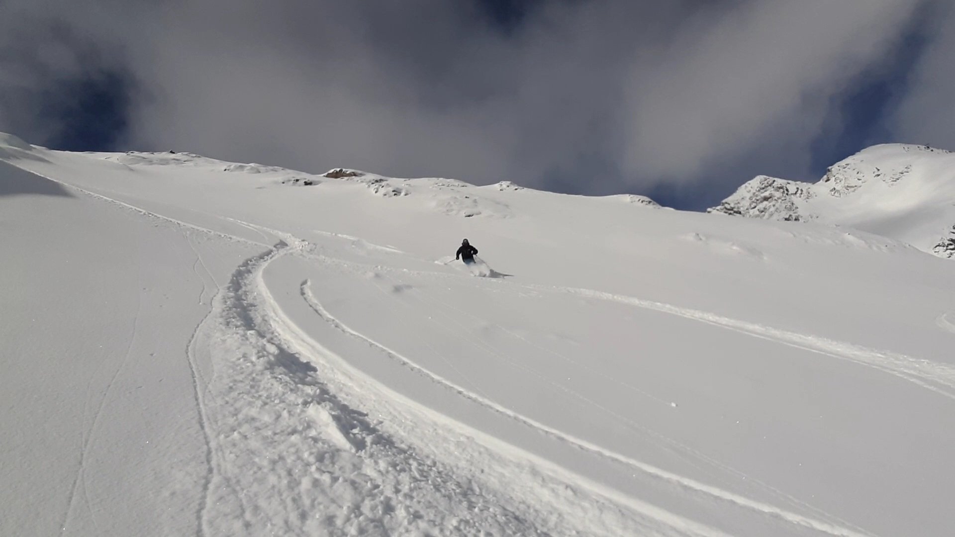 Du pur bonheur en hors piste. Sur le glacier autour de l"Herpie en matinée.