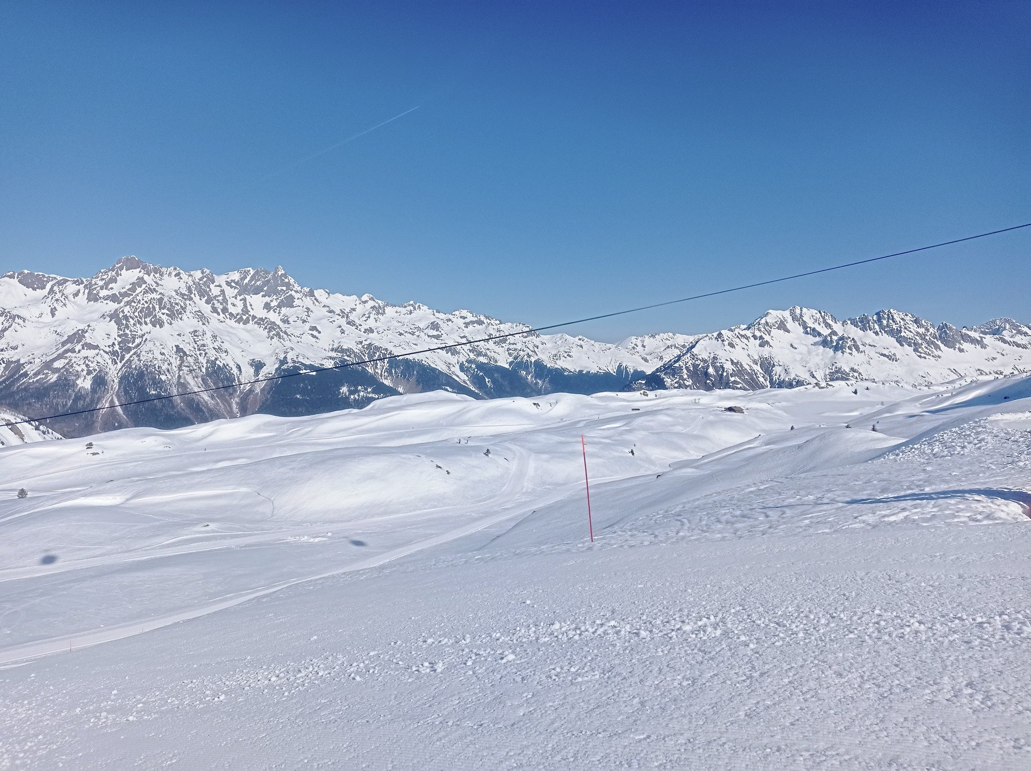 Dimanche de Pâques bien chargé sur les pistes de l'Alpe d'Huez puisque beaucoup ont eu l'idée de passer les vacances au ski. Petit cafouillage sur Pic blanc 1 et 2, cumulé aux Jeux qui sont fermés à 9h30... Montée donc laborieuse en haut du 2 ème tronçon. Je décide ne pas m'aventurer plus haut, histoire de ne pas passer ma matinée dans les files d'attente 😅