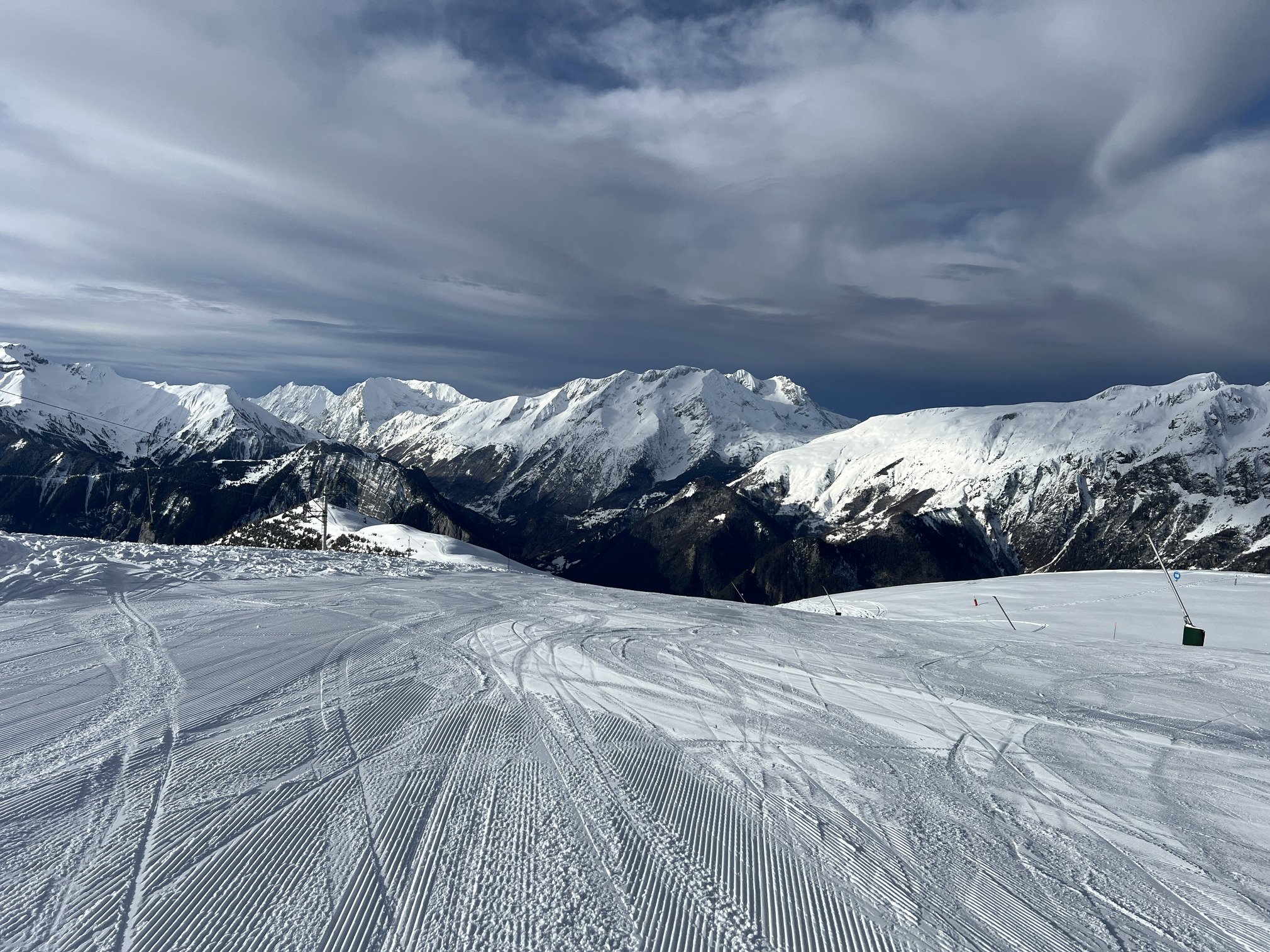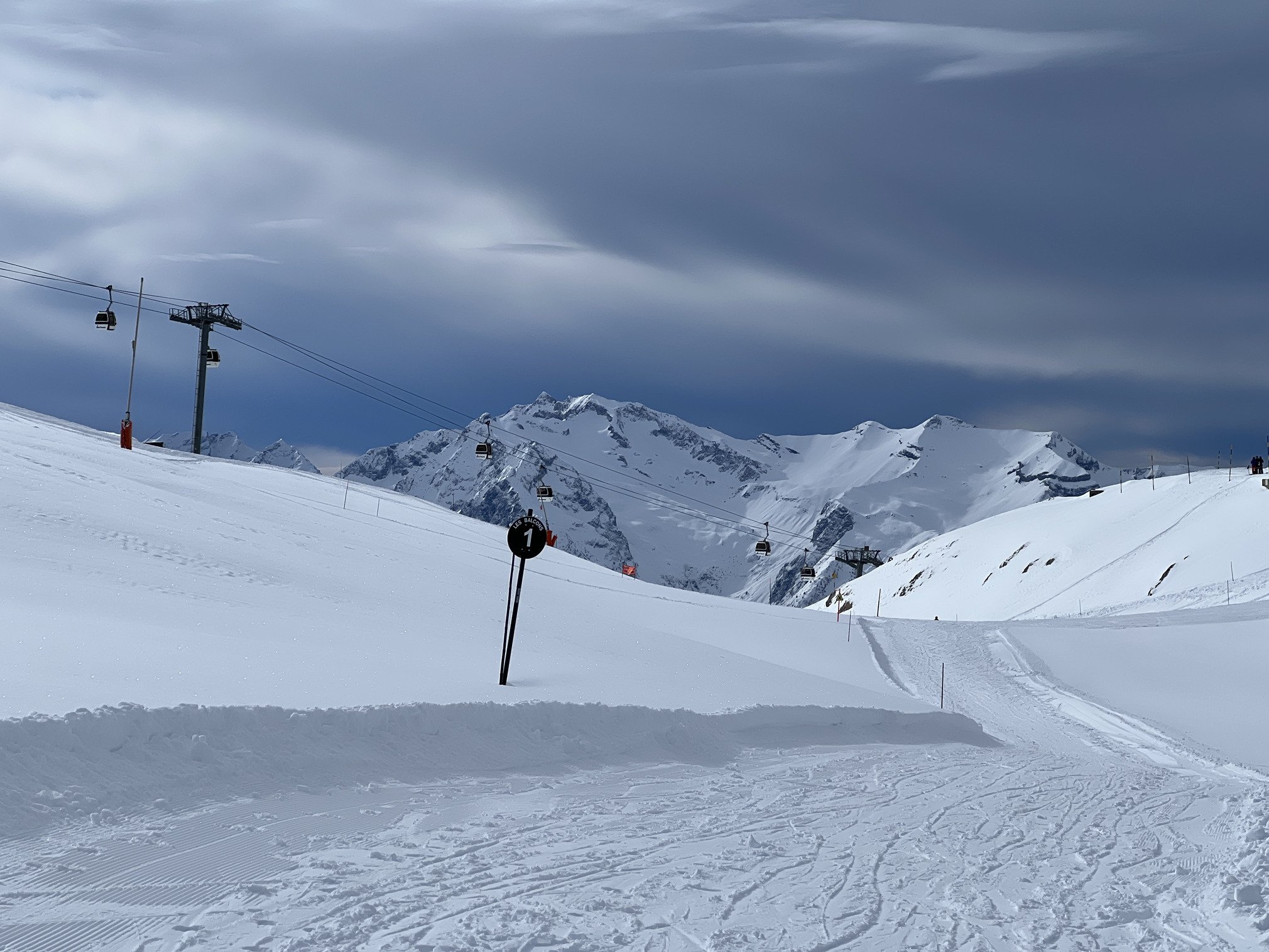 Neige parfaite sur les pistes, forcément raclée sur le fond dur en fin de journée.