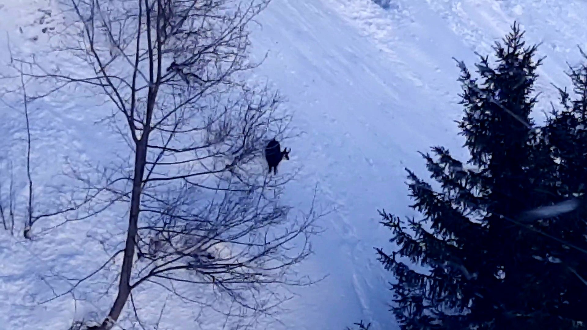 On a eu le temps d'admirer le chamois lors de l'arrêt de quelques minutes de l'Alpette au dessus des pentes enneigées et des falaises. Formidable ce côté sauvage sur Oz !