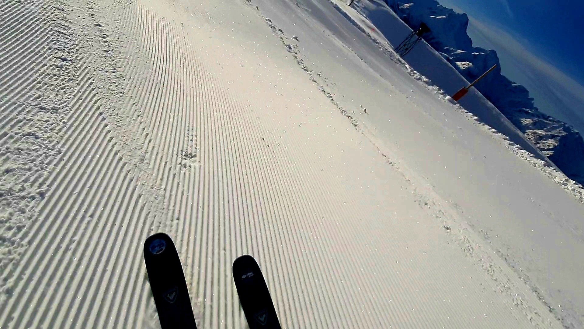 Pas d'attente ligne remontées mécaniques Marmottes à M1, M2 et M3 pour attaquer le 2ème run de Sarenne avec un petit tour sur l'Herpie ! Juste sur Campanules dans la grande descente un damage irrégulier avec des trous. Il faut bien anticiper et réduire un peu sa vitesse pour eviter la gaufre à mach 2 !