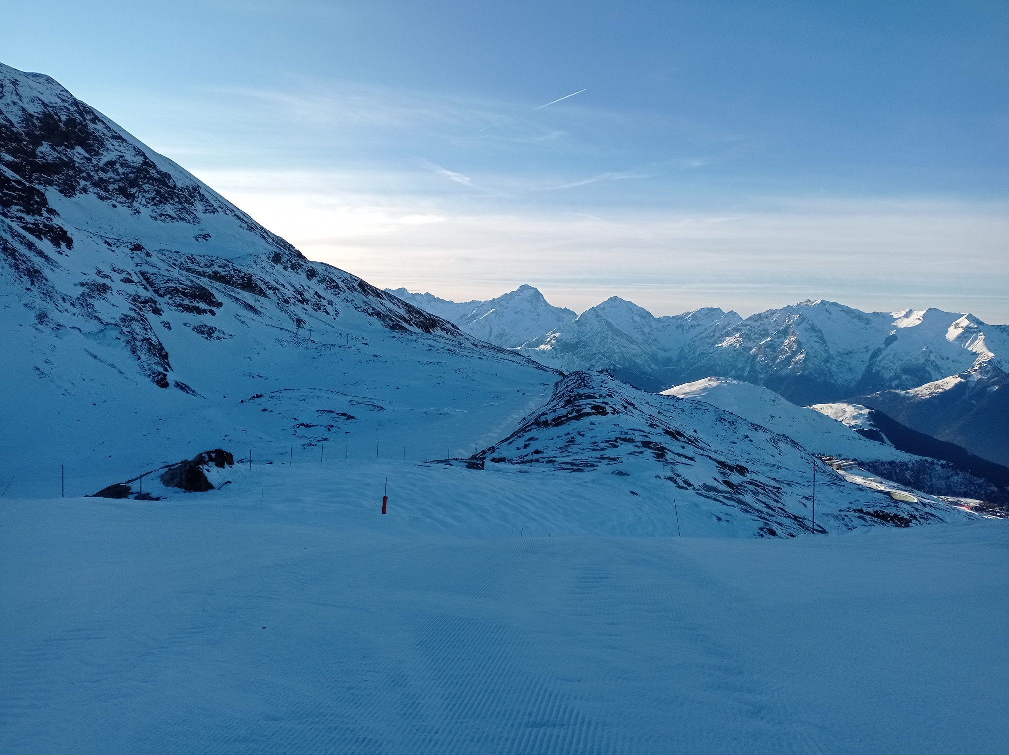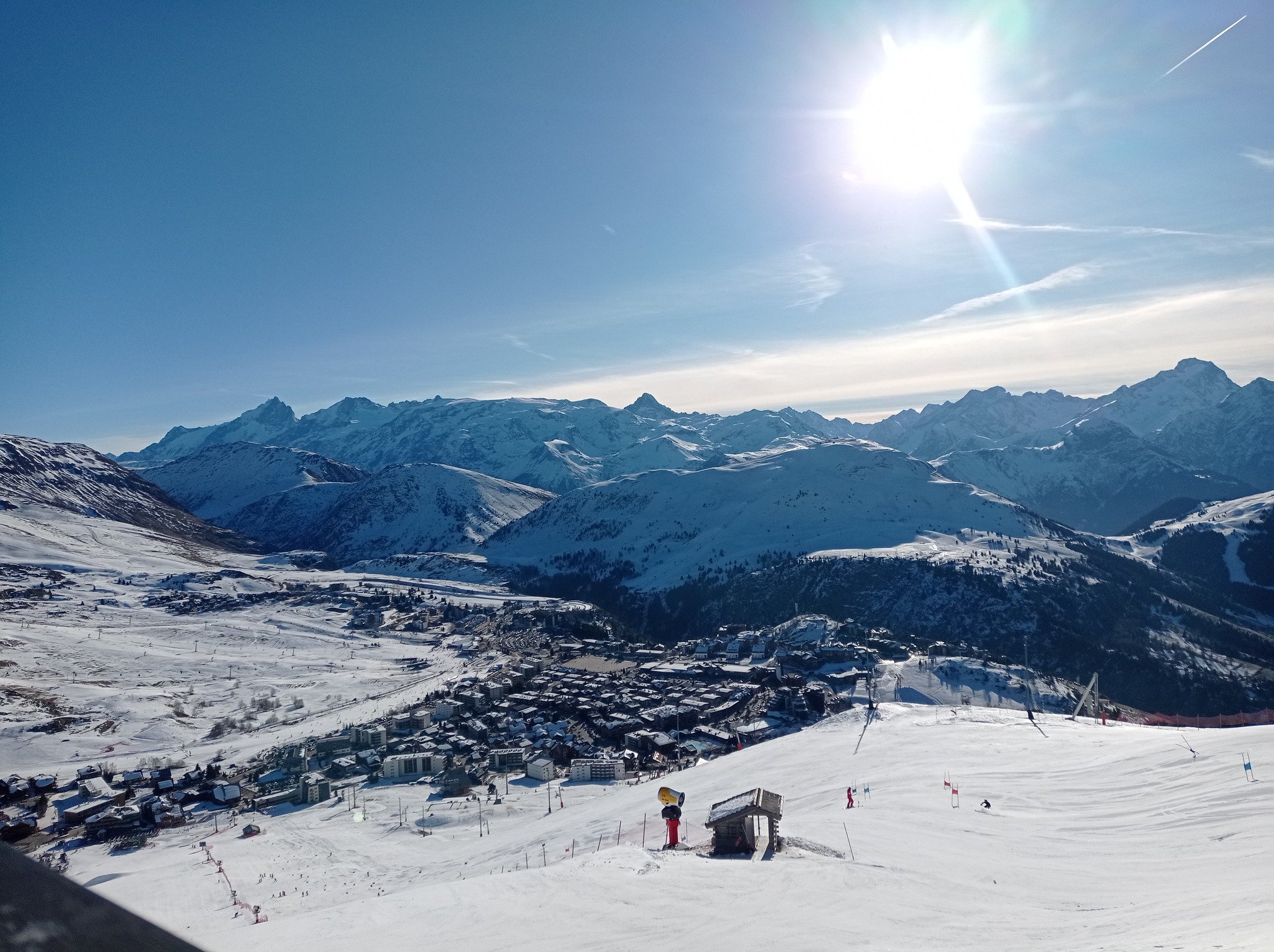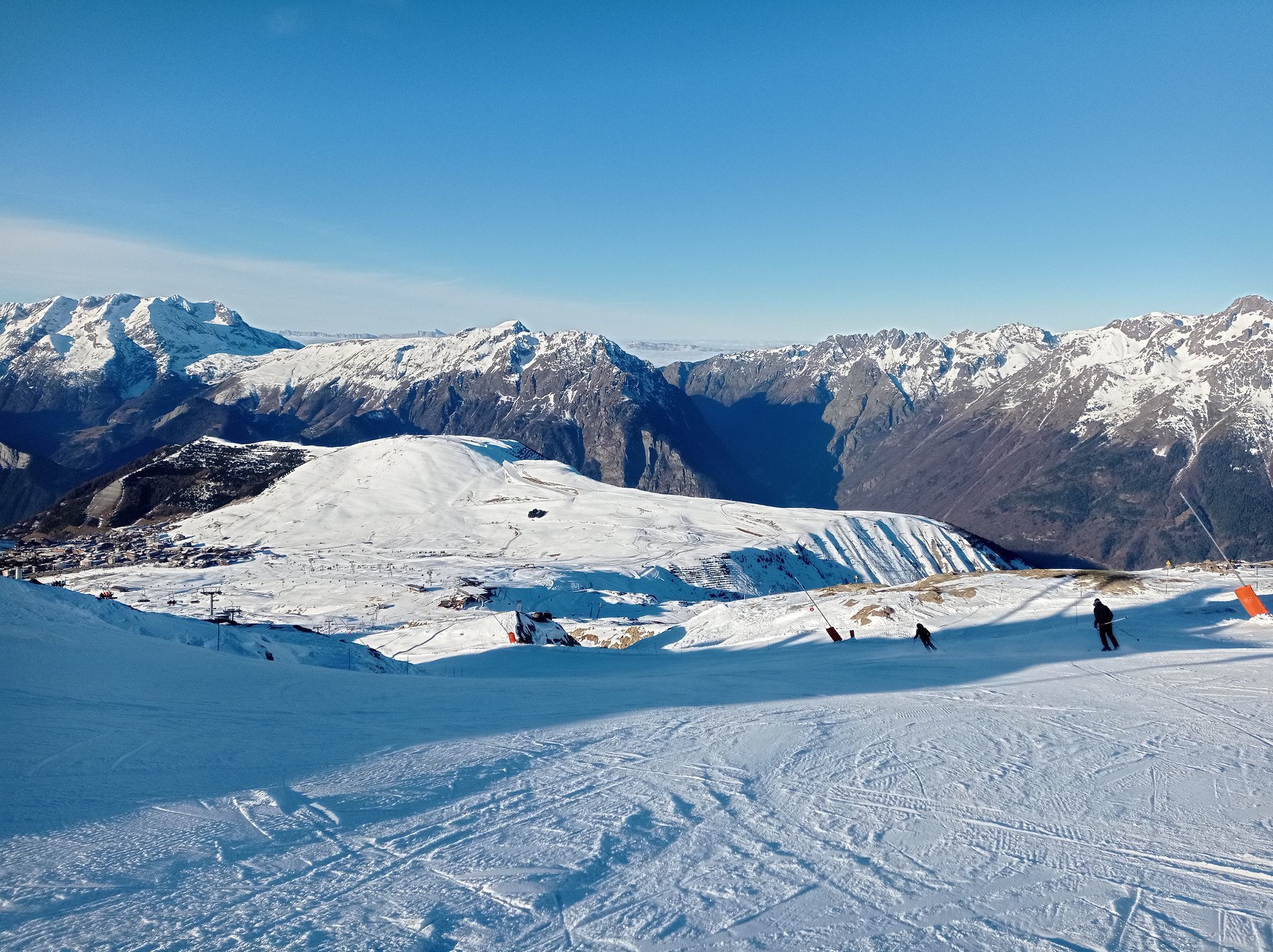 Météo : Ce vendredi 2 janvier à l’Alpe d’Huez, la journée se déroule sous un ciel parfaitement dégagé du matin au soir. L’ambiance reste très lumineuse, l’horizon est net et la visibilité excellente sur tout le domaine. Consultez la météo de l'Alpe d'Huez pour le bulletin complet.