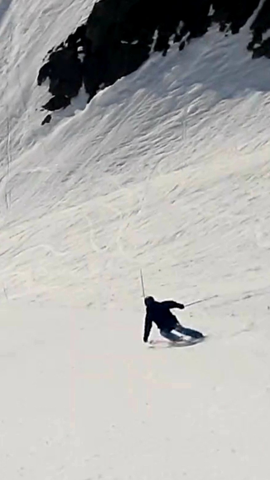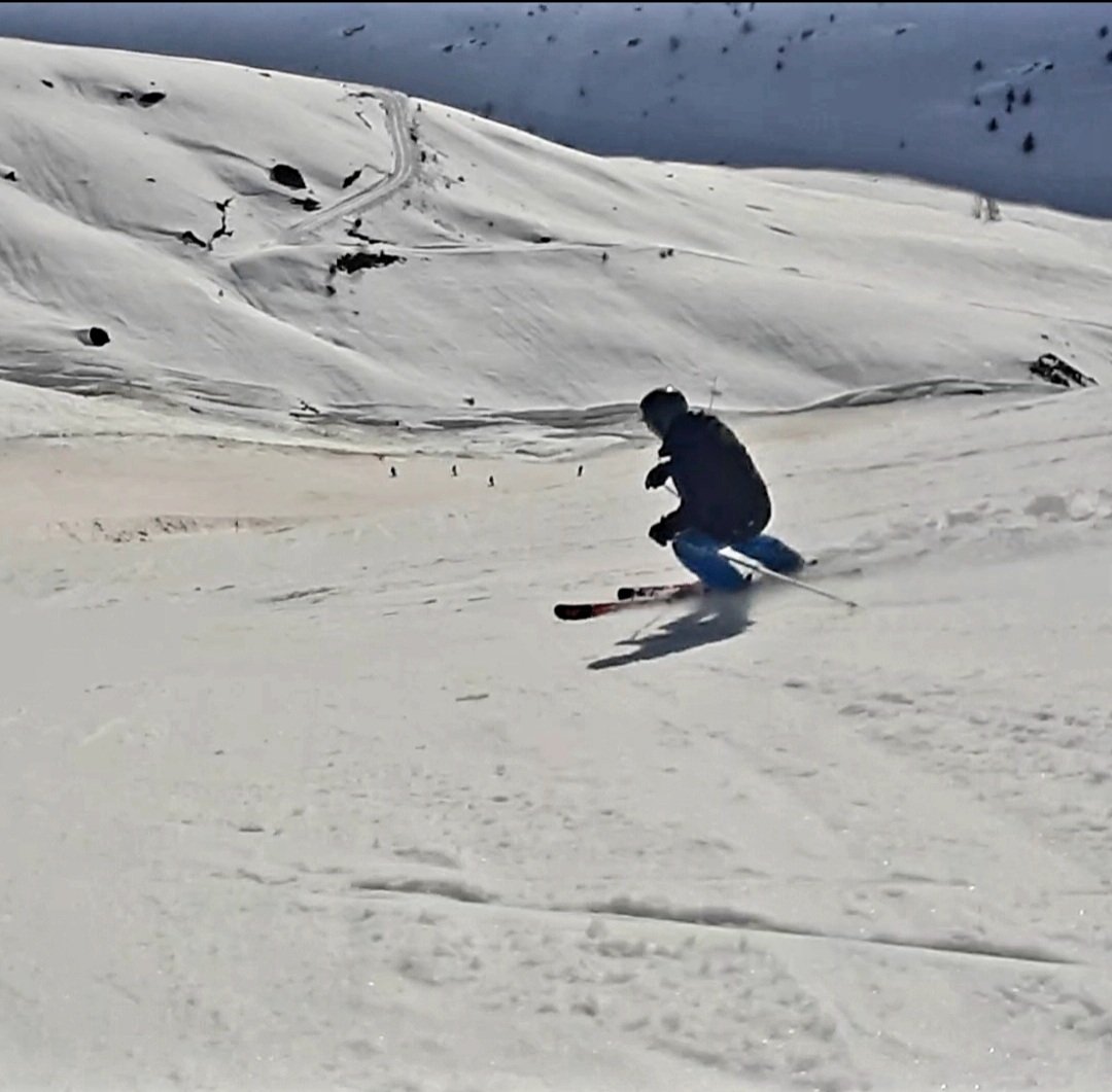 Sur Sarenne entre la cime du Pic Blanc et l'Herpie ça reste relativement congelé matin ou après midi ! En dessous de l'Herpie c'est mieux dès la fin de matinée ! En fin d'après midi dans le dernier mur de Sarenne c'est en mode bosses gros sel ! Avec des cailloux en pagaille sur la fin de mur, le schuss et le début du chemin des gorges de Sarenne sous Cassini et au niveau de la cabane du berger disloquée broyée dans l'avalanche de Cassini de février.