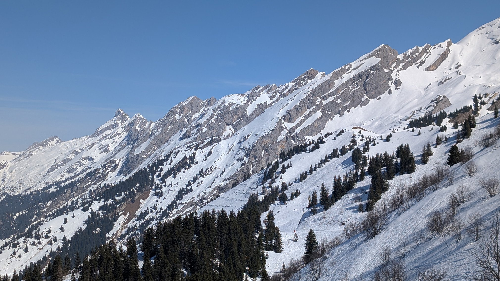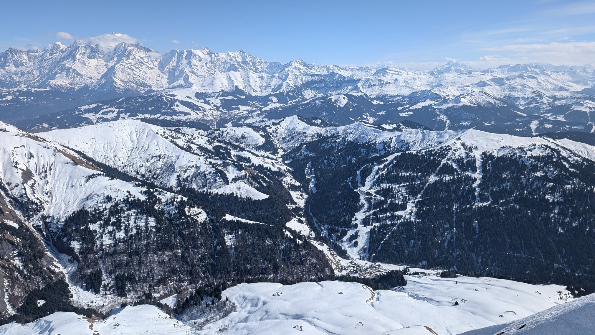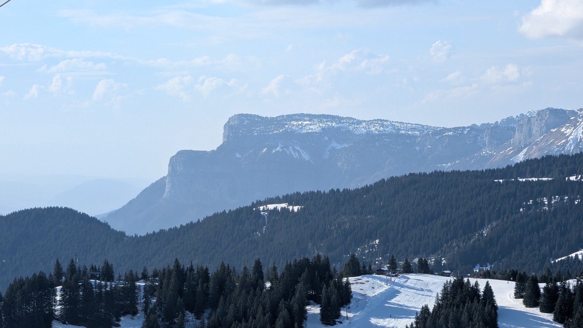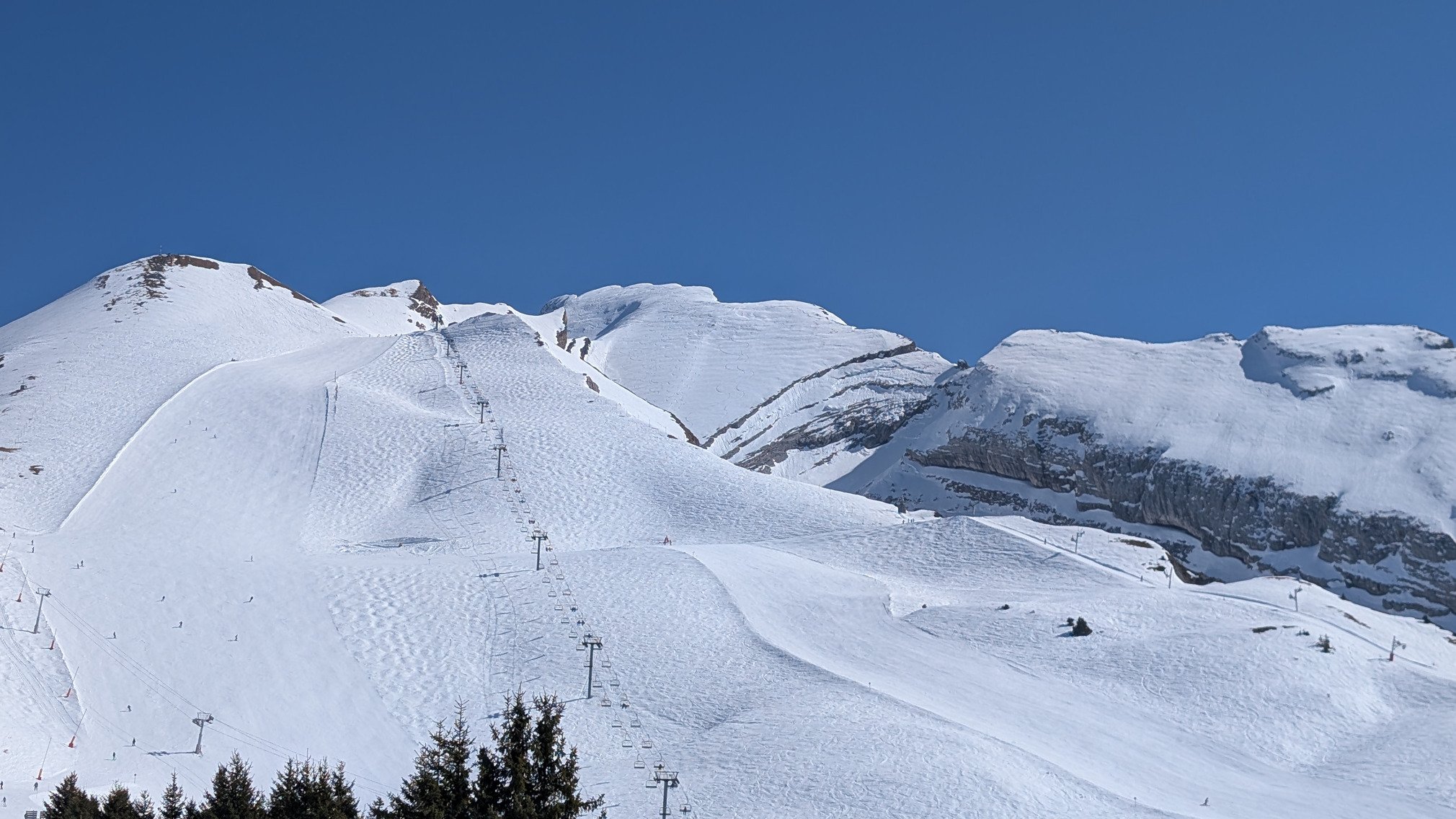 Aujourd'hui, il y avait un grand soleil et jusqu'à 13°C à la Clusaz. Ainsi, au fur et à mesure de la journée la limite soupe/neige correct est de plus en plus haute allant jusqu'à 2000m en fin de journée. Le meilleur secteur est évidemment celui de la Balme.