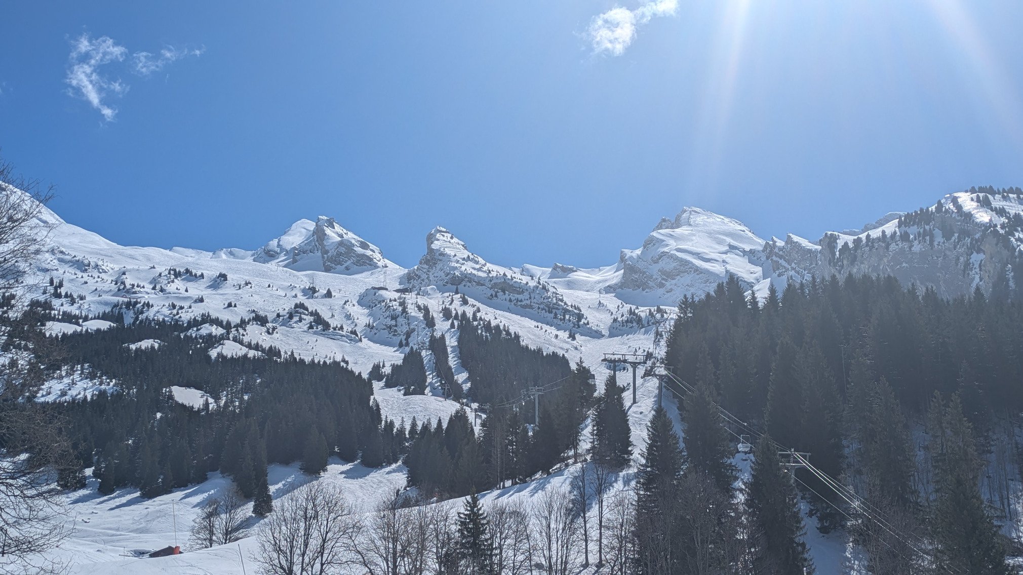 Résultat : beau temps, belle neige, un vent qui se planque à mi matinée, 10 à 20 cm sur fond dur façon février frigo, personne sur le domaine et bonus, les parties qui étaient gelées sous le souffle du matin (-6°C au parking) sont devenues souples sous le soleil d'avril. Bienvenue en Avrier !
