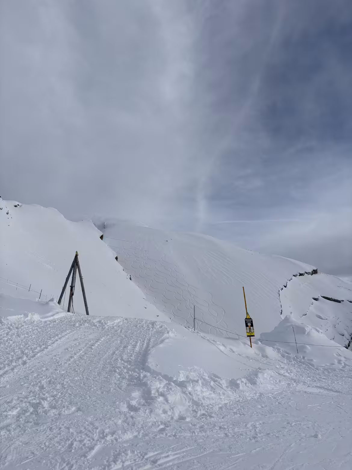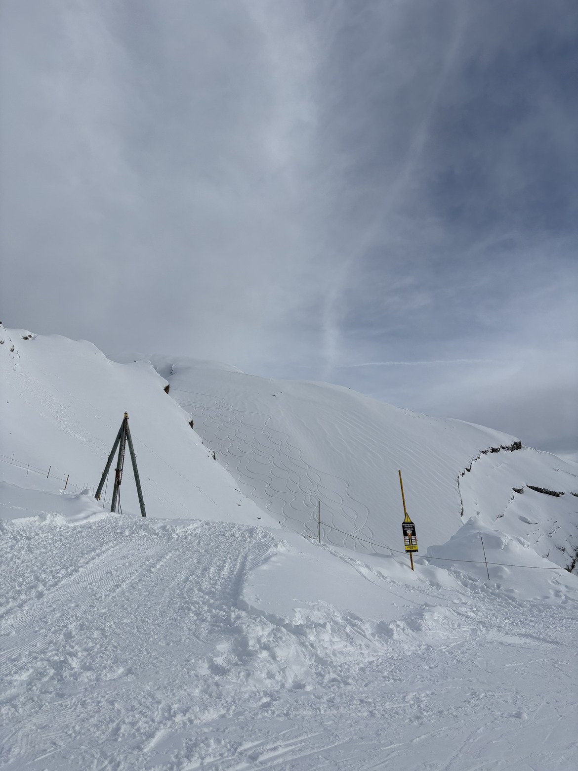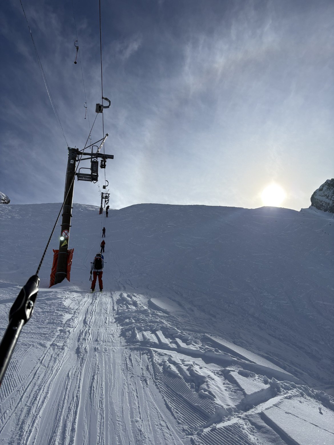 Il était tombé environ 20 cm de neige au sommet, avec une limite pluie/neige autour de 1500 m. Les pistes sont bonnes sur le haut, bien glacées en bas.