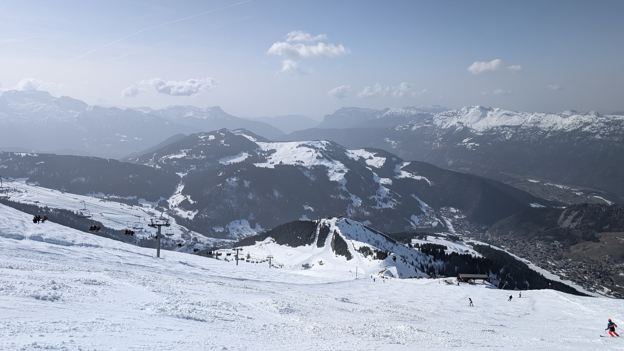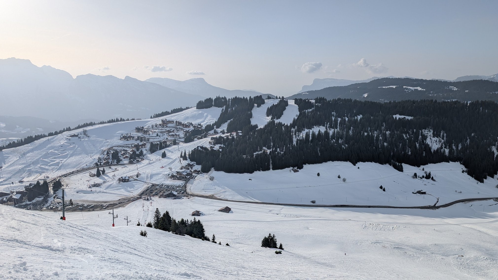 J'ai skier l'après midi à La Clusaz, et avec 13°C en station, évidemment c'est de la soupe partout avec plus ou moins de bosse. Les conditions sont corrects au dessus de 2000m et sur les pistes à l'ombre au dessus de 1400m.