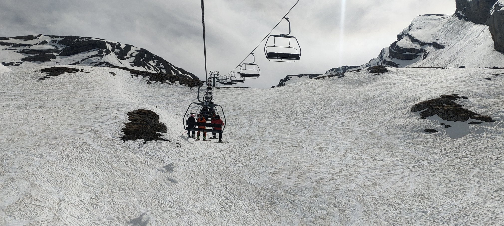Après 33 ans de bons et loyaux services, le télésiège du col de Balme (un 4 places à pinces fixes) a transporté ses derniers clients aujourd'hui... avant d'être remplacé par un TSD6 l'an prochain.