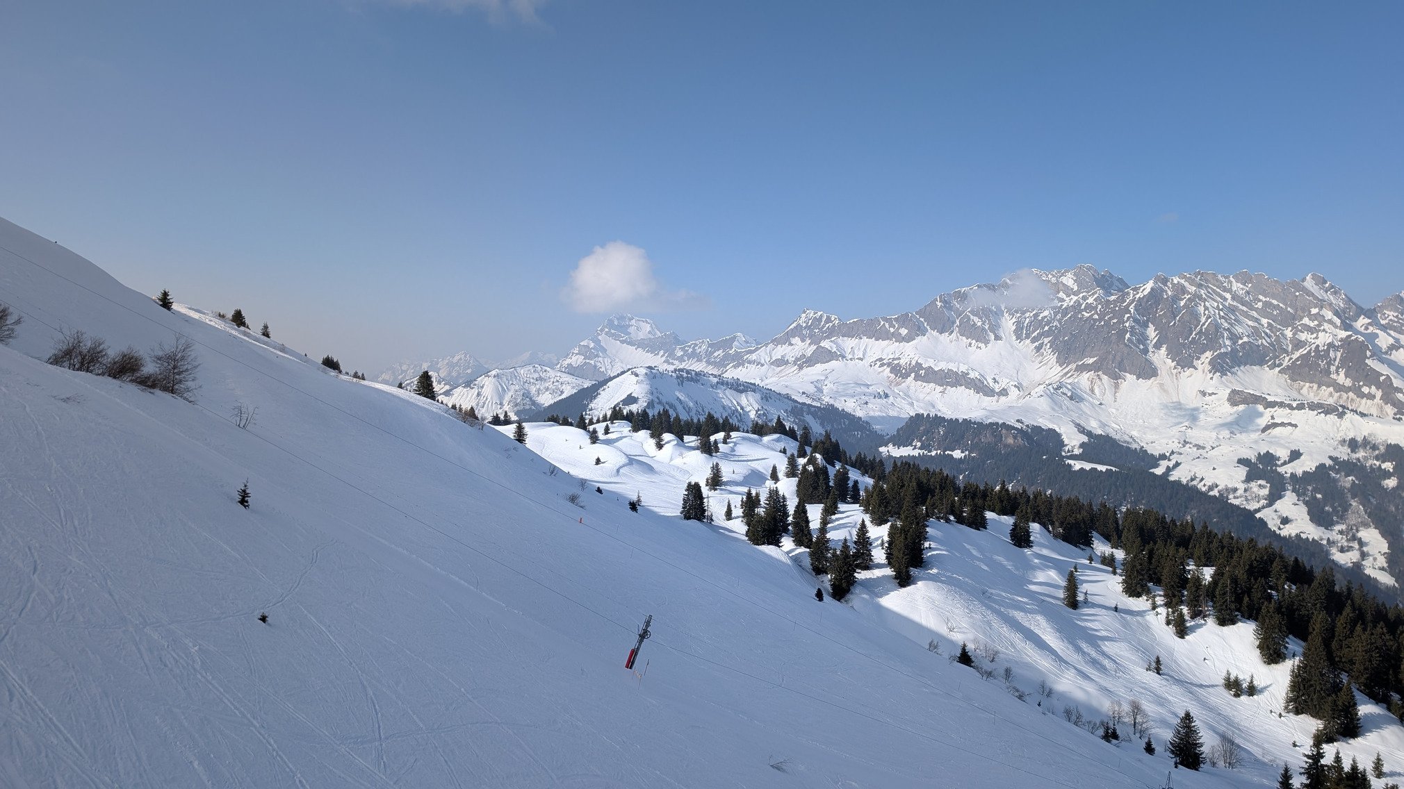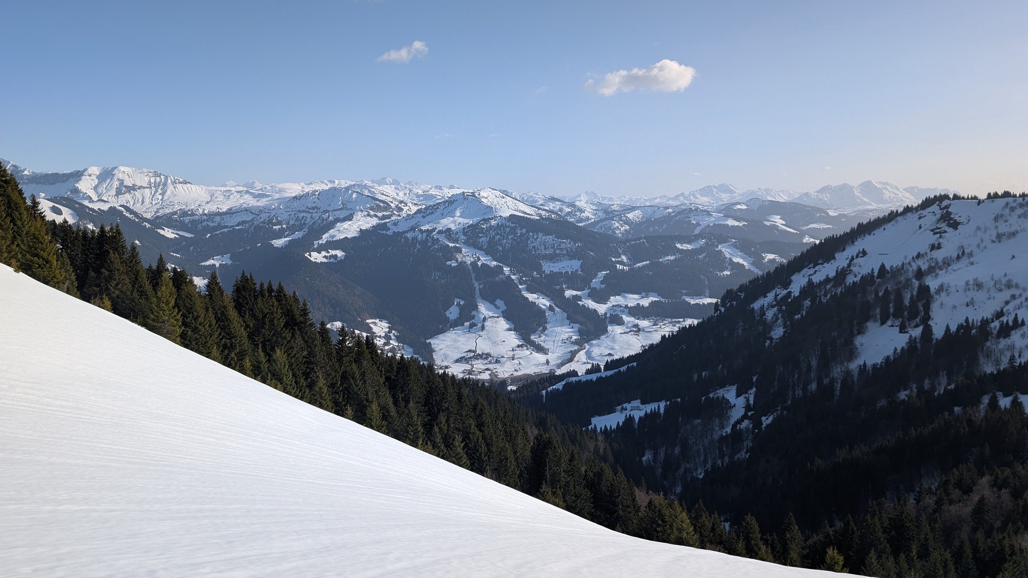 Il fesait beau et chaud. Les pistes côté sud et est comme Combloux et Megève était effectivement de la soupe, mais les pistes côté nord ou à l'ombre comme La Giettaz ou le ts Jouty reste bonne toute la journée.