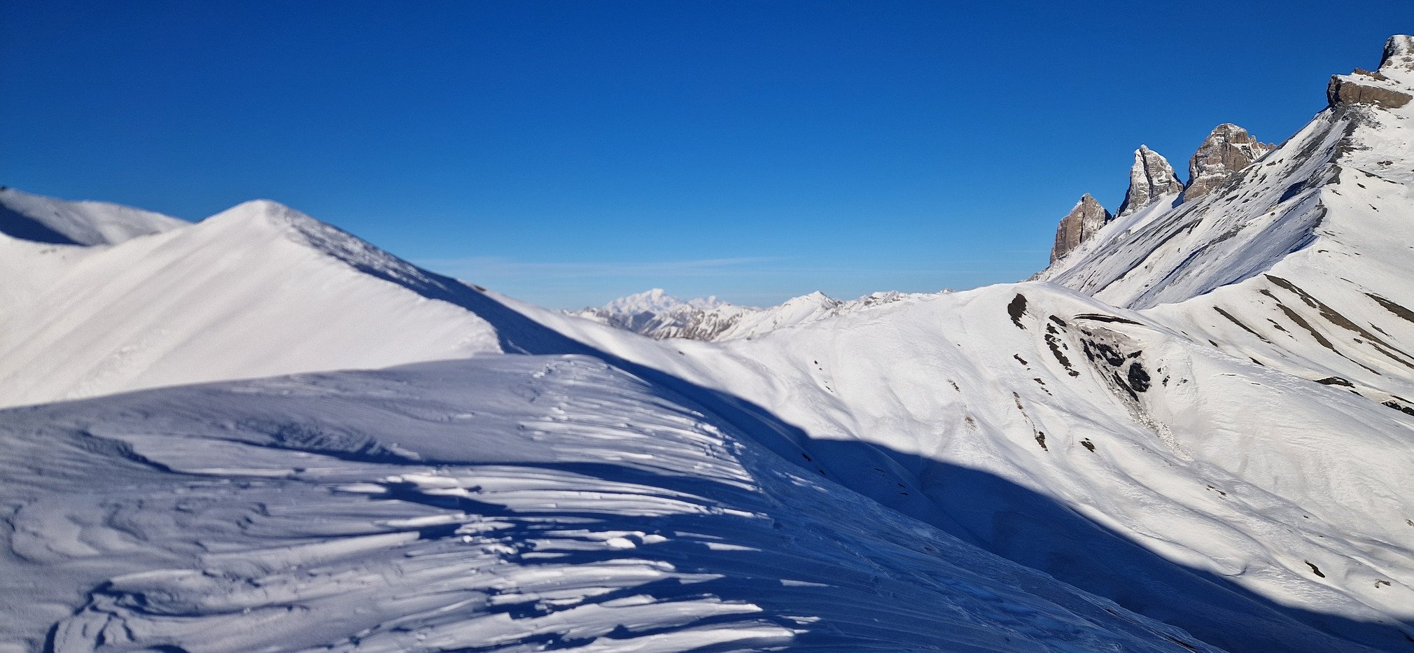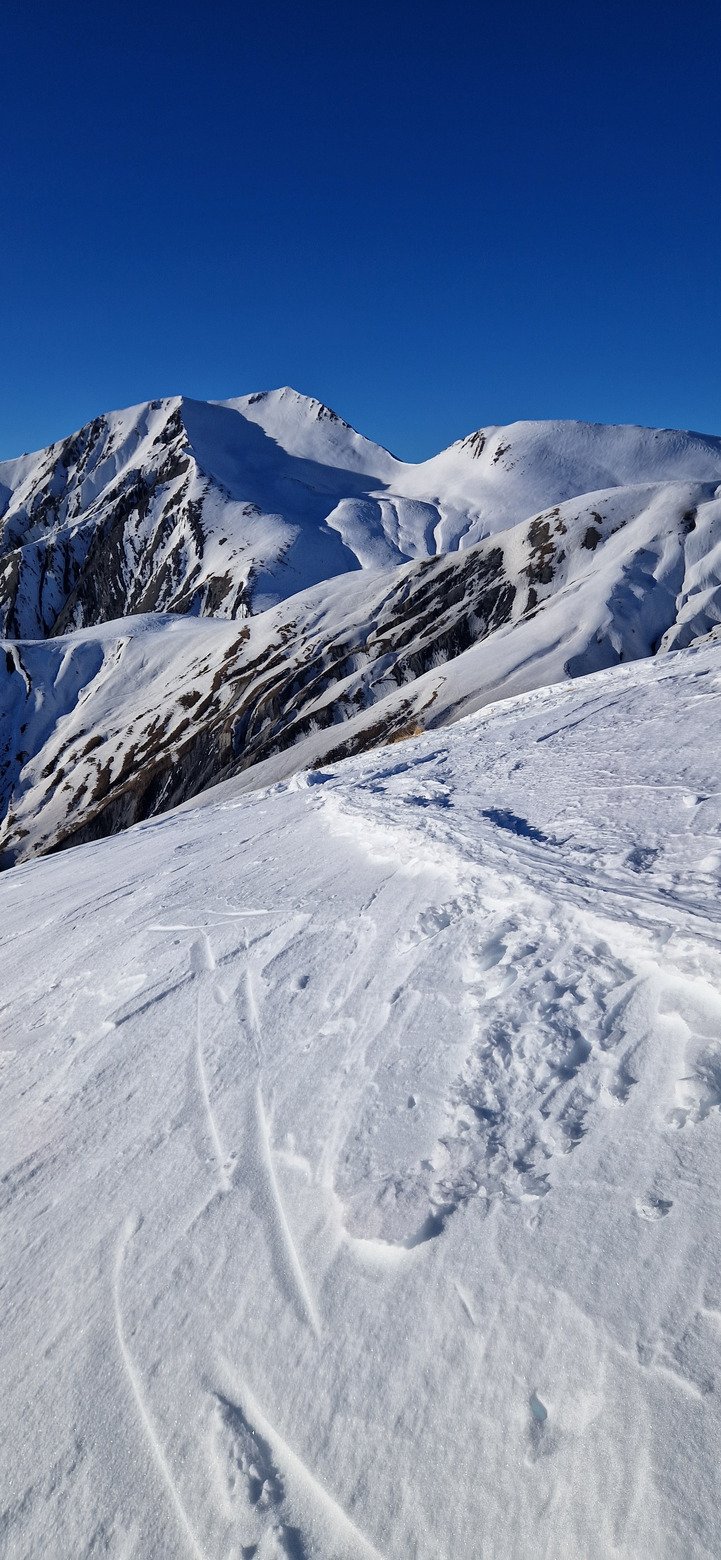 Mais le principal problème était le manque de neige, le vent à tout enlevé, il n'y a plus rien en sud jusqu'à plus que 2000m et même sur les autres expos il n'y a vraiment pas grand chose, la descente fut donc treeees longue et éprouvante. Heureusement que la frontale était dans le sac.