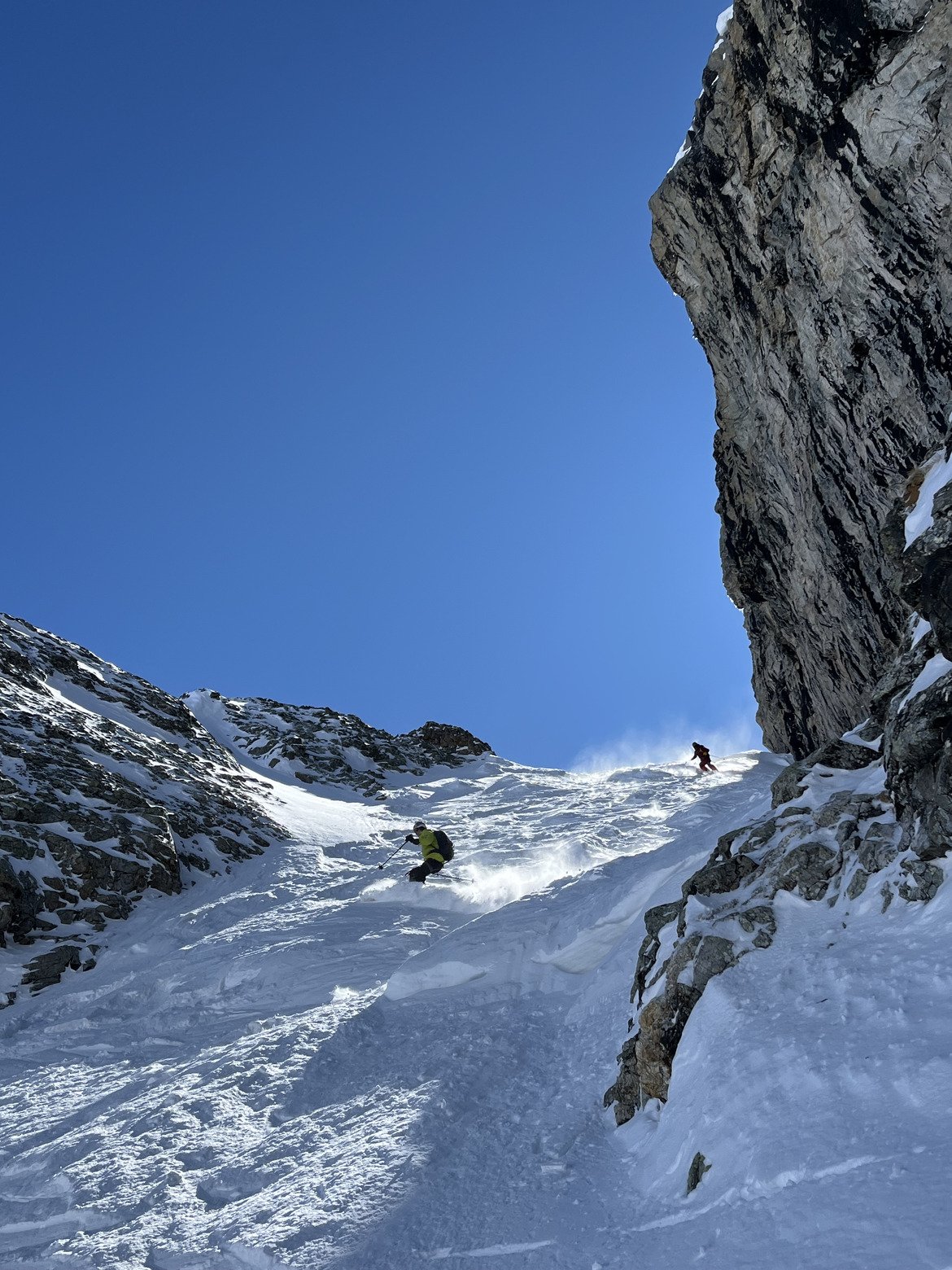 Le Pan semble particulièrement sec vu d’en bas et je me demandais même s’il sortait vu les cailloux au dessus de la rimaye mais il a été tracé x5 minimum finalement. Trifides est devenu une autoroute mais devait être très bien. On a fait 2 Bananes en bonne condition aussi.