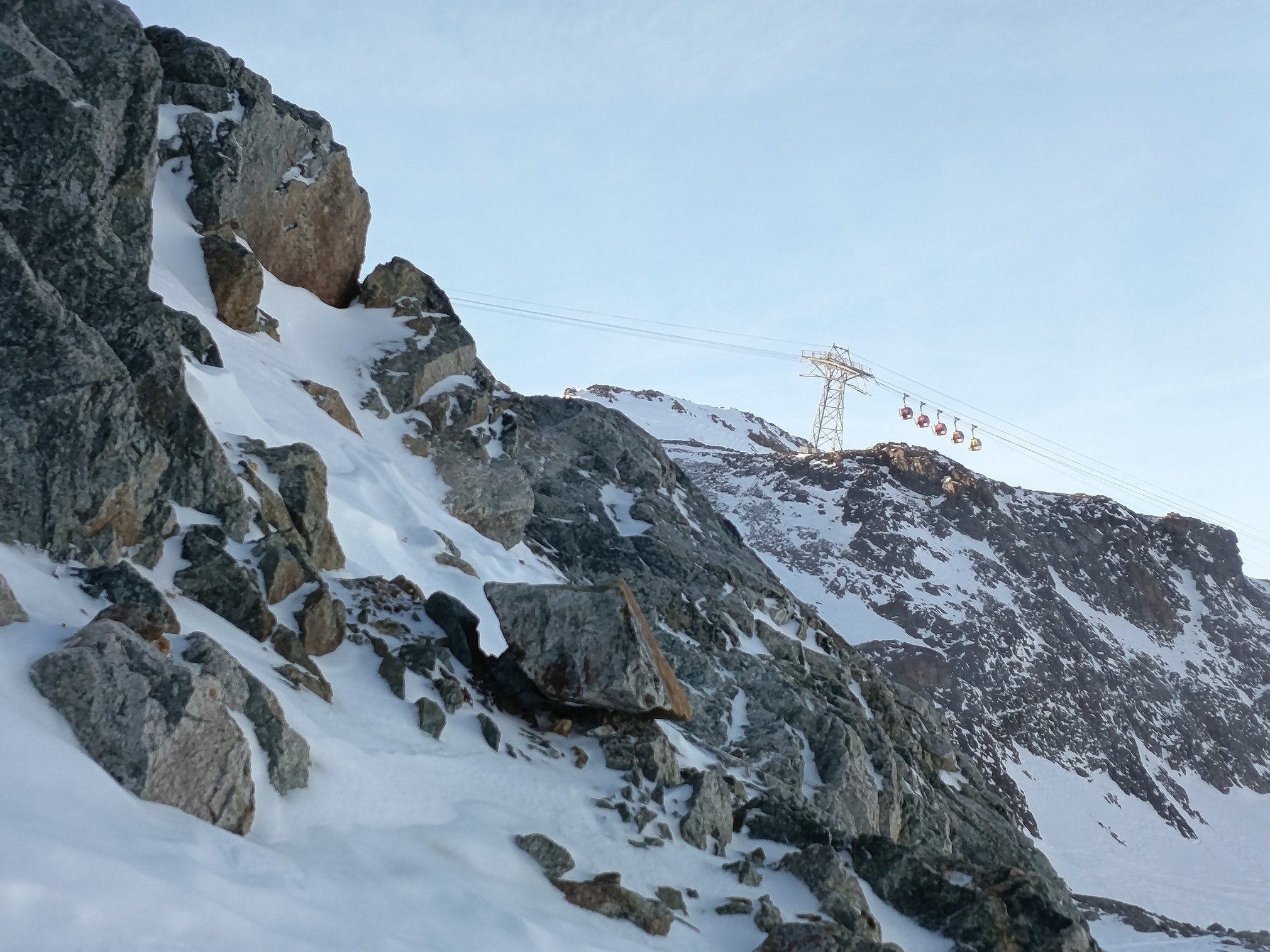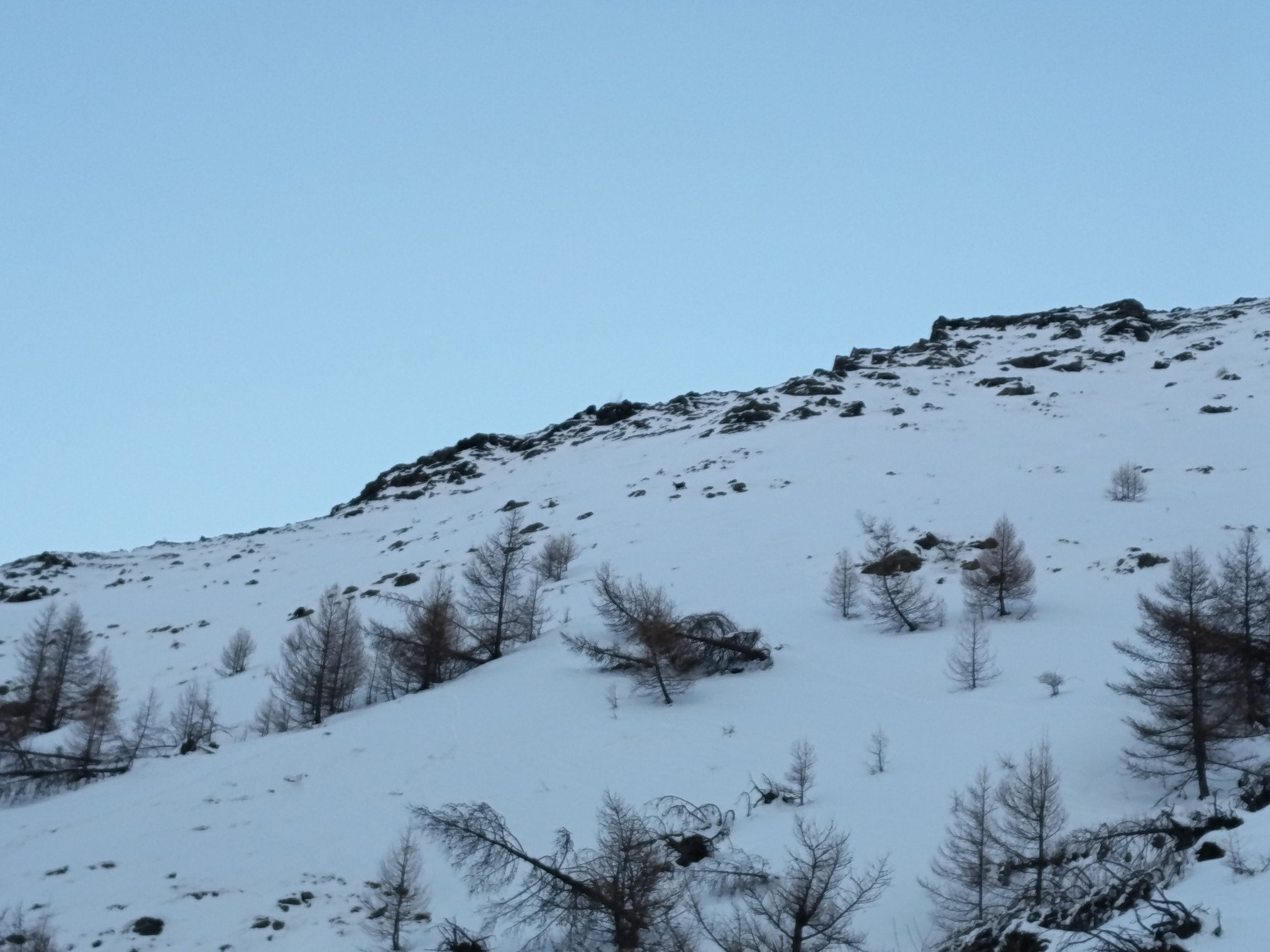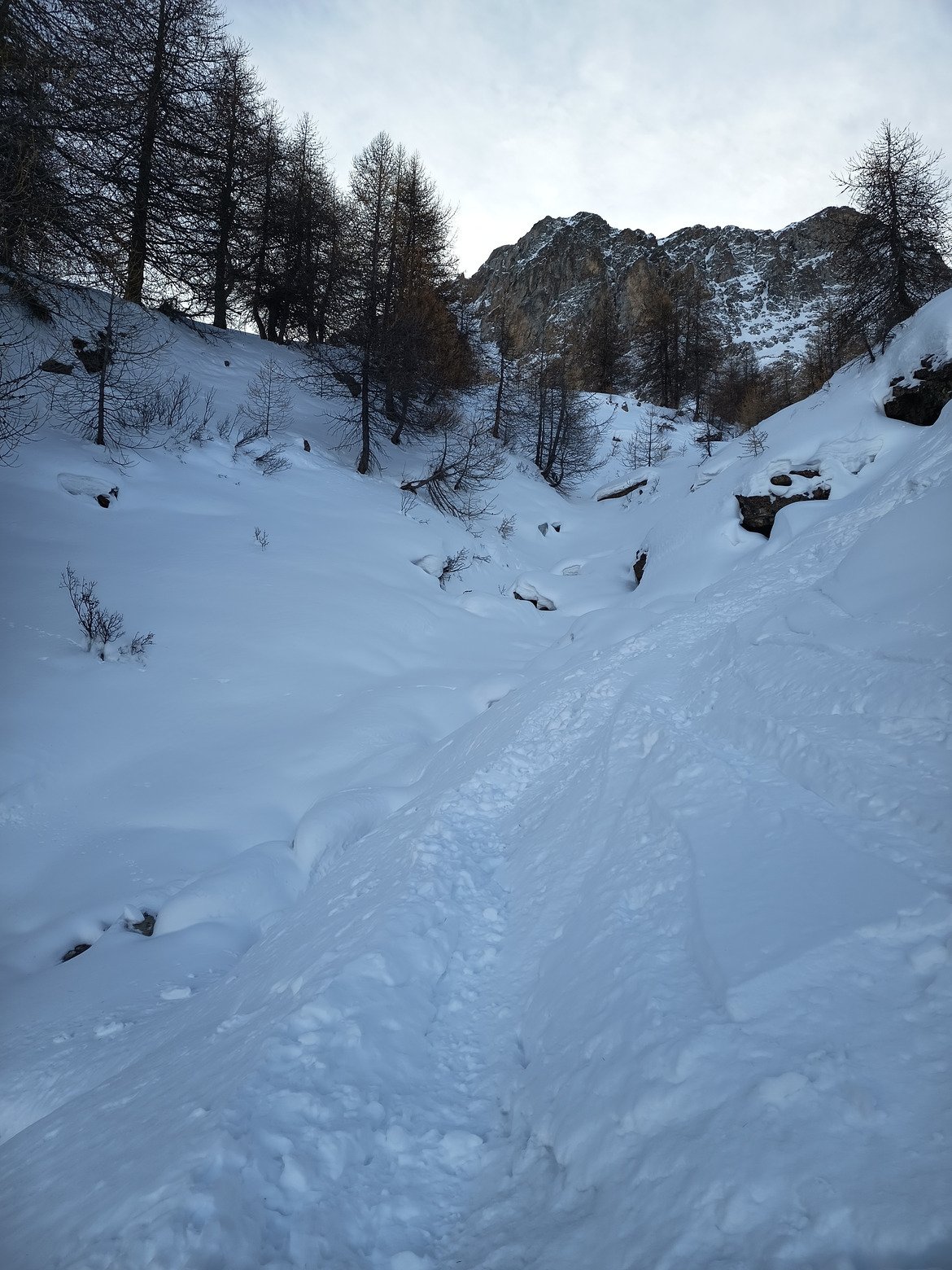 c'est plaisant d'aller jusqu'en bas et le fort vent de sud a 3000 ramene la neige constamment dans les vallons