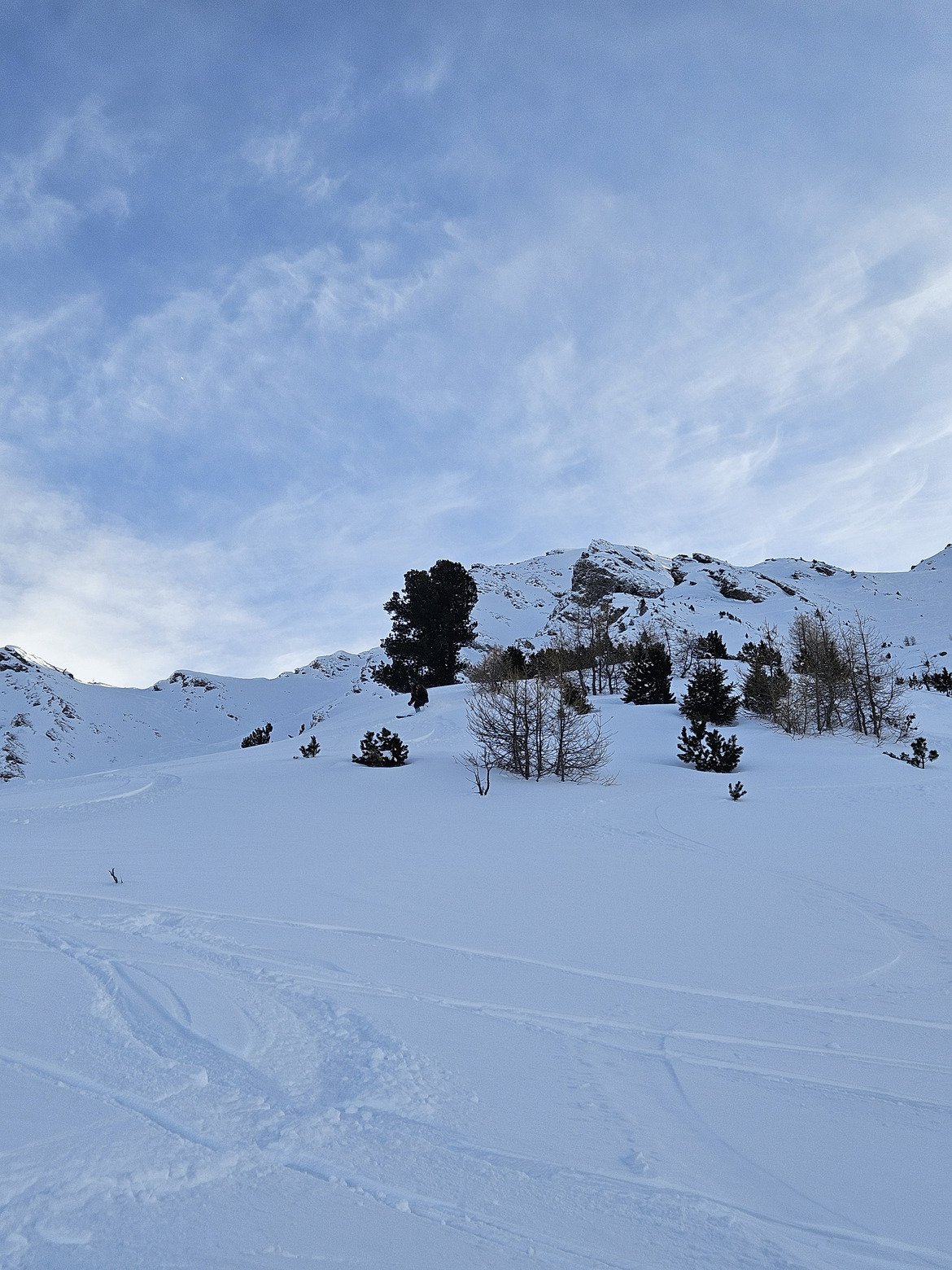 D'abord, l'idée c'est de se chauffer les cuisses d'une traite du haut de Norma II jusqu'au front de neige. Les pistes sont bien entretenues, il y a pas grand monde. Alors oui, ça chauffe. Du carving de sagouin on a dit.