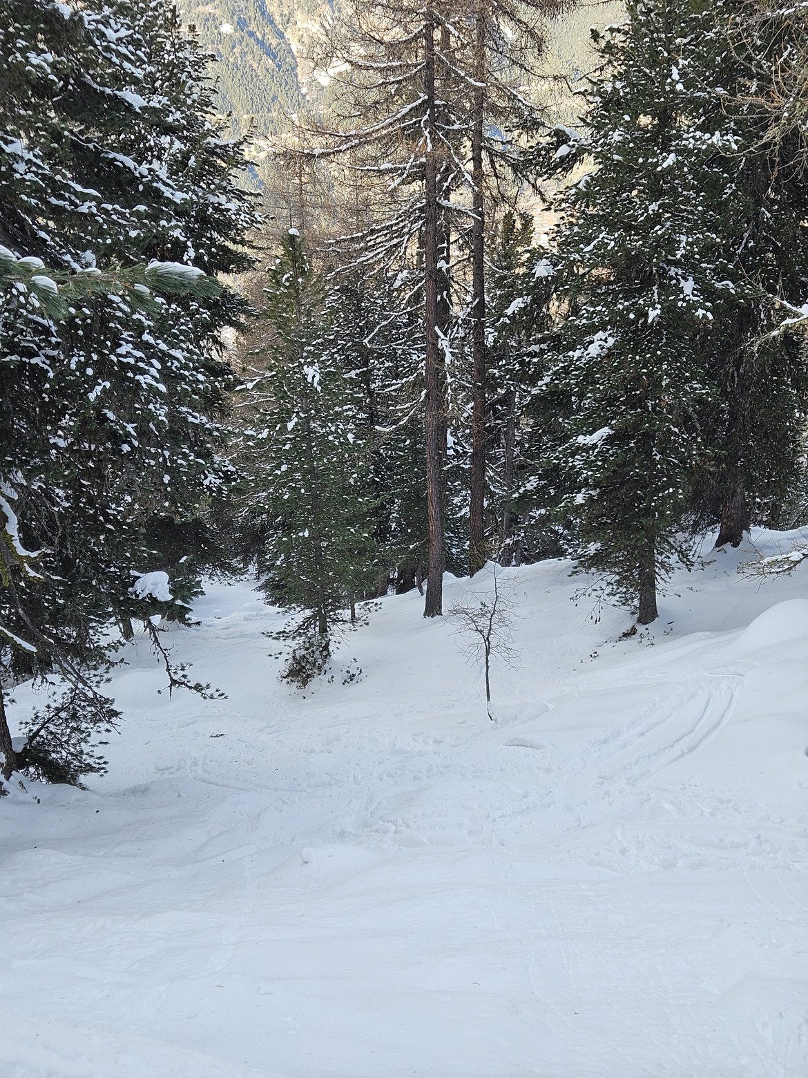 Puis, on part chasser les derniers patchs de poudreuse. D'abord dans le bas du vallon de Saint Antoine. La partie haute est partie en 2 ou 3 avalanches. Puis sous les Crêtes, parce qu'il en reste.