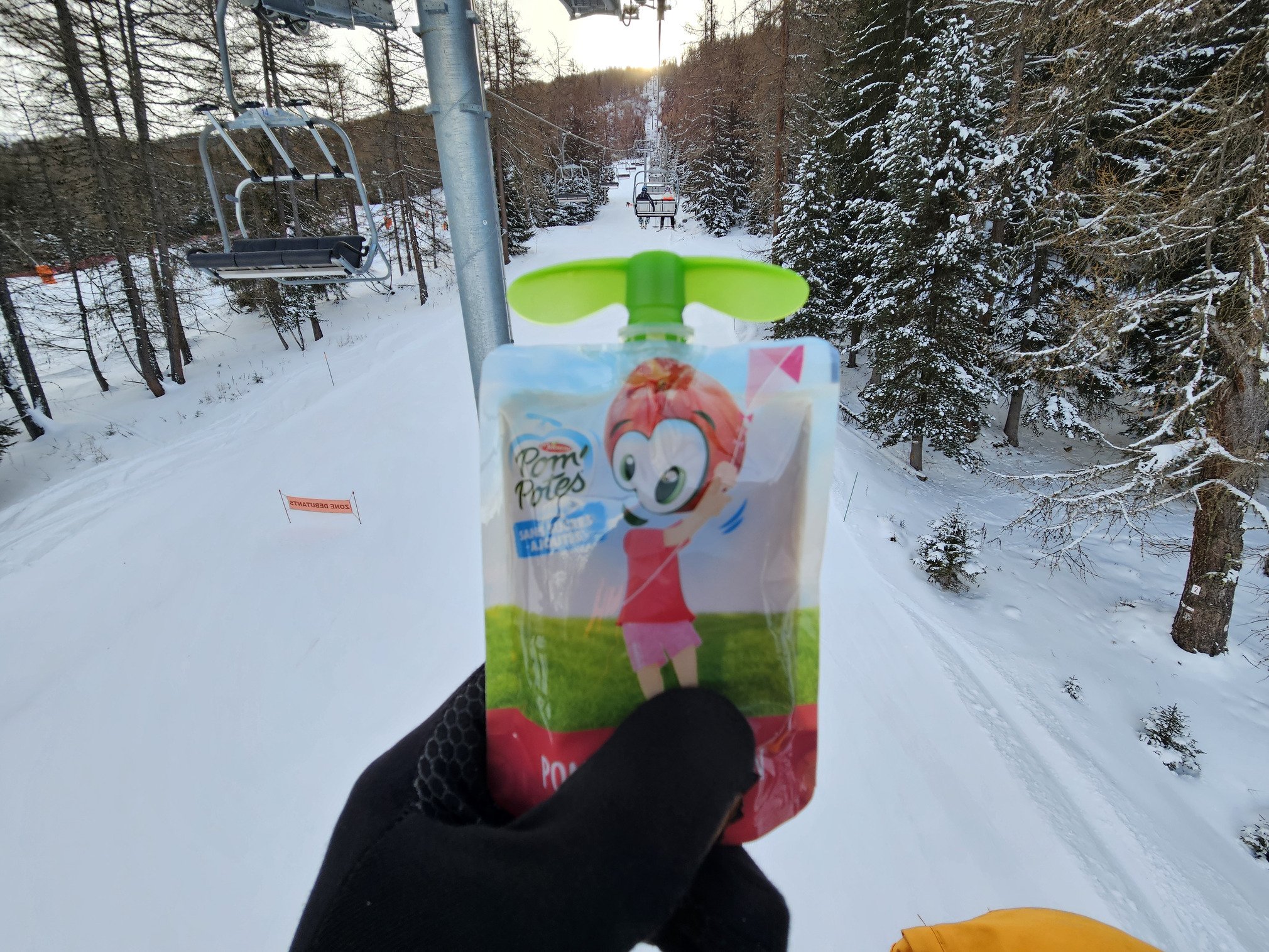 Dommage qu'il faille prendre deux remontées à chaque fois pour enchaîner. Les télésièges sont longs. L'occasion pour une pause Pom'potes.