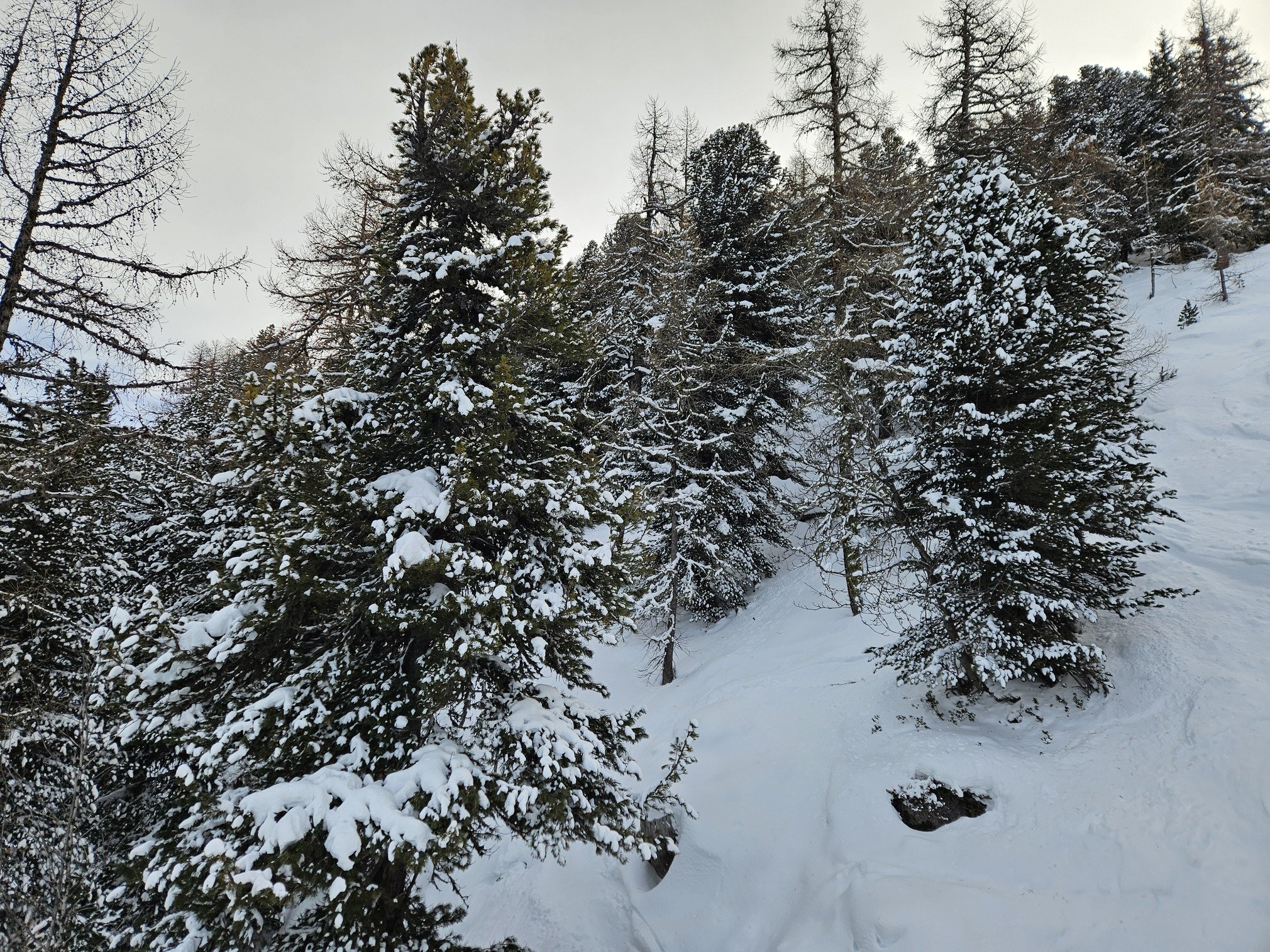 Pas de traces là haut. Et pour cause ; le brouillard a sévi ces derniers jours. Mais aujourd'hui, la visibilité est revenue. Beau soleil cet après-midi.