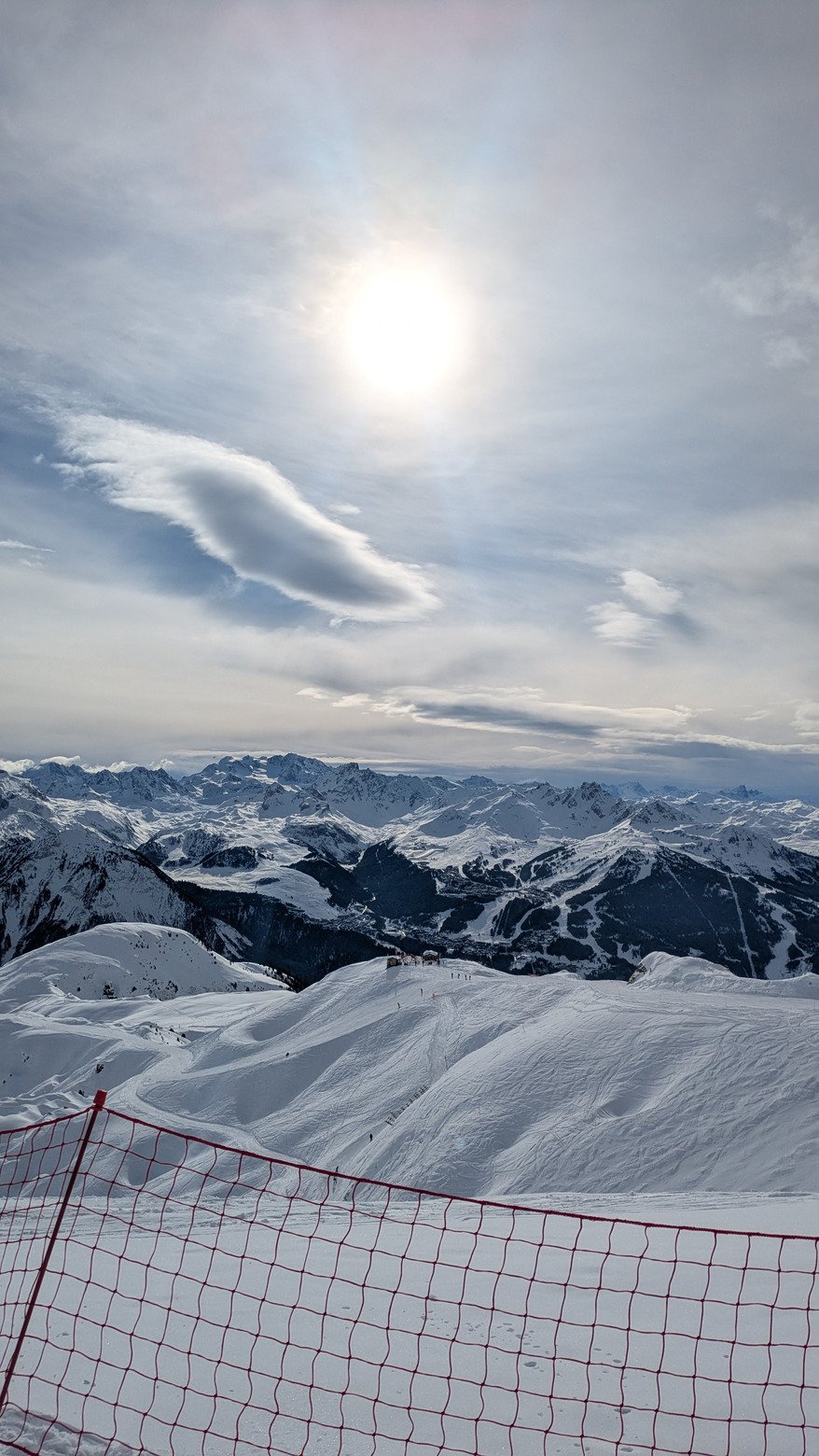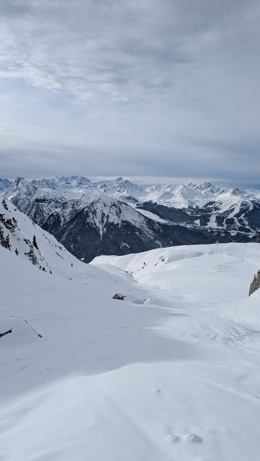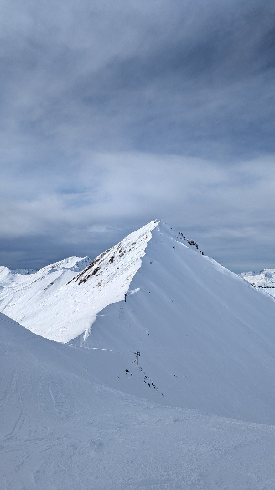 On va chercher les quelques rayons de soleil côté Champagny, le fond des pistes et des HP reste durs avec 5 à 15 cm de neige fraîche par dessus, il y a des belles lignes à prendre mais gaffe à la glace dessous ! On évite le monde pour la matinée et on ira pas plus loin que Plagne Centre au final.