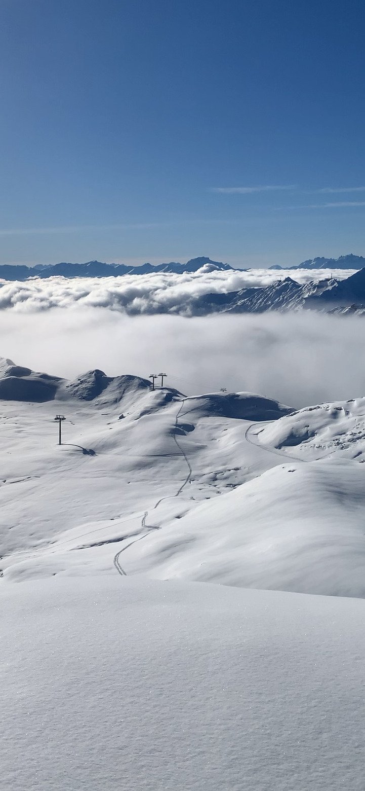L'air très froid est chargé de petits cristaux de neige qui scintillent, on évolue donc dans une ambiance de poussière de fée sous le soleil. Les panoramas sont si jolis qu'on aurait (presque) pas envie de redescendre !