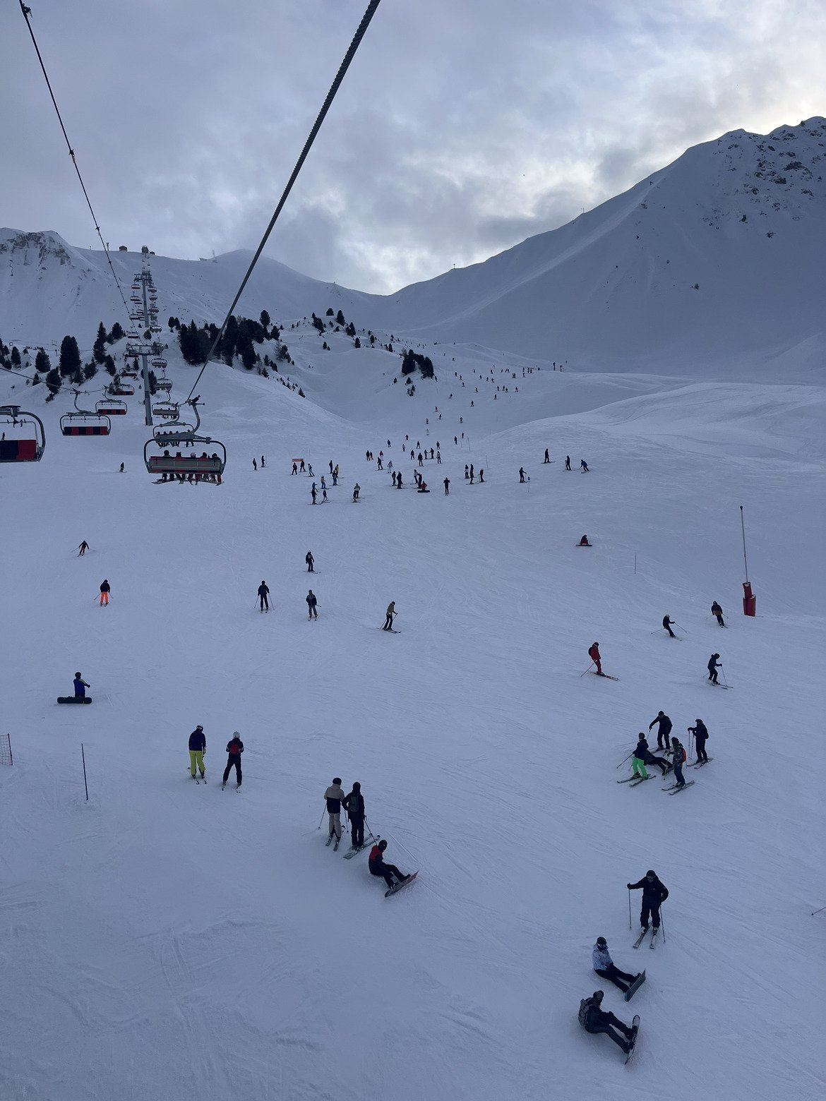 Météo : Ce lundi 26 janvier à La Plagne, la journée se déroule sous un ciel chargé. En matinée, de petits flocons se montrent par instants sans réelle tenue au sol, la limite pluie-neige descend très bas, sous le bas du domaine. Consultez